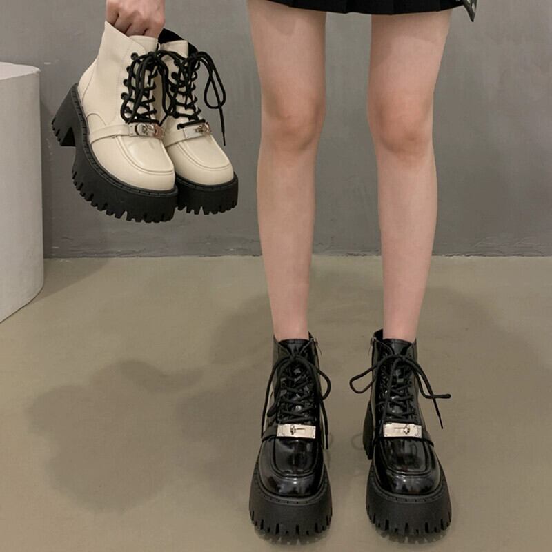 Jia Bufake 女性のマーティンブーツ 2023 秋冬スタイル英国メタルベルベット高揚オートバイブーツ 靴 シューズ オータム 秋物 ウィンター 冬物 jxjxf35405571744