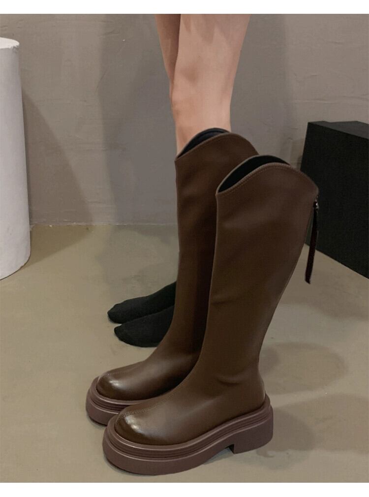 Jia Bujia 超人気ショートブーツ女性 2023 秋の新作スタイル多彩なレトロな気質厚底コンタブルスリムブーツトレンド 靴 シューズ jxjxf75605957298