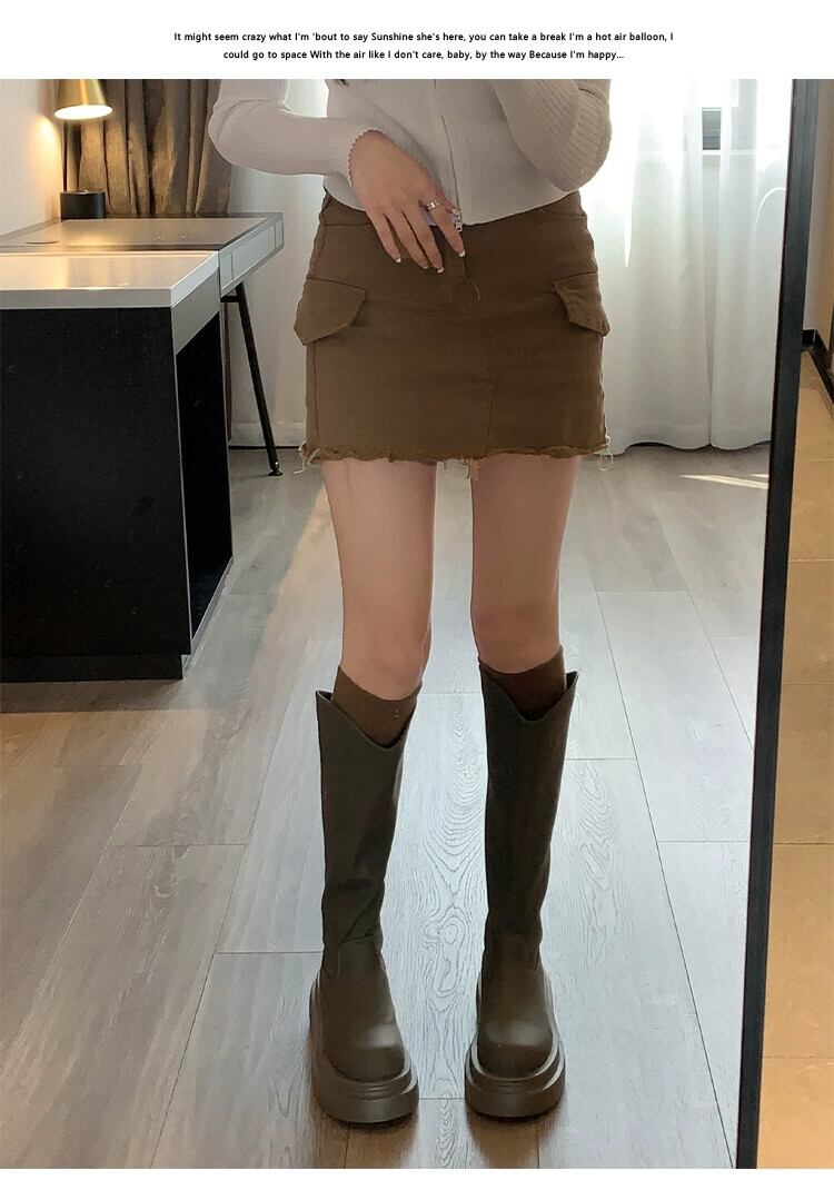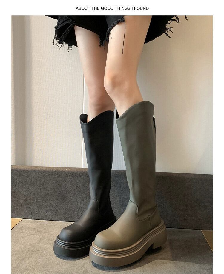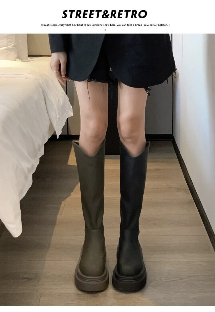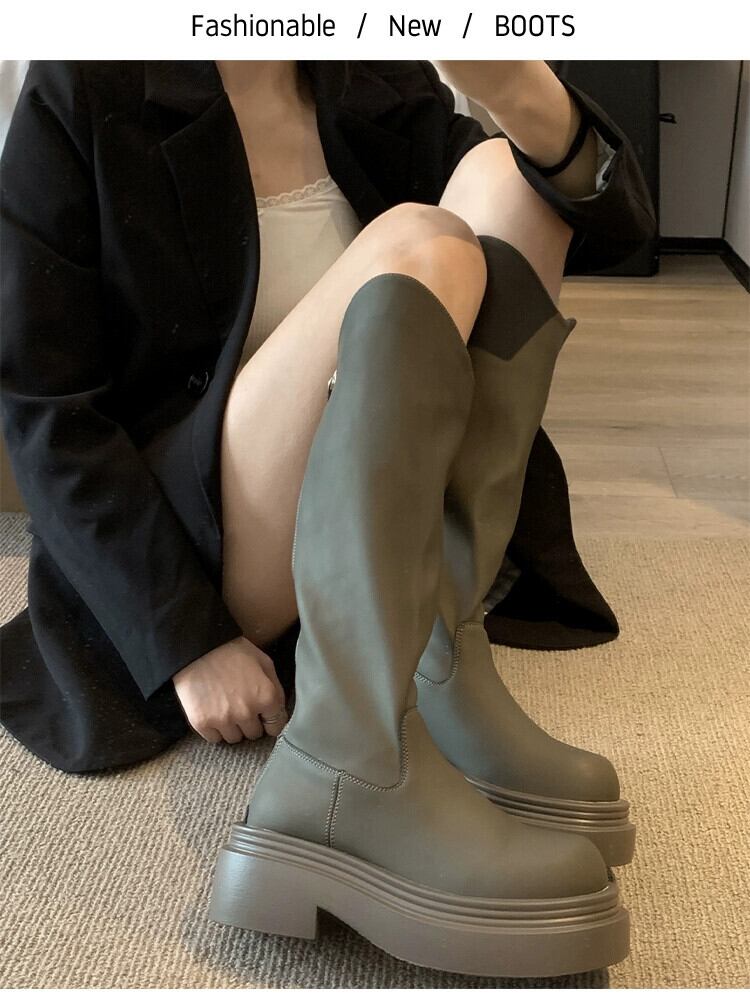 Jia Bujia 厚底ブーツの女性 2023 秋の新スタイルレトロシンプルなスリムファッションハイブーツトレンド 靴 シューズ オータム 秋物 jxjxf30914473682