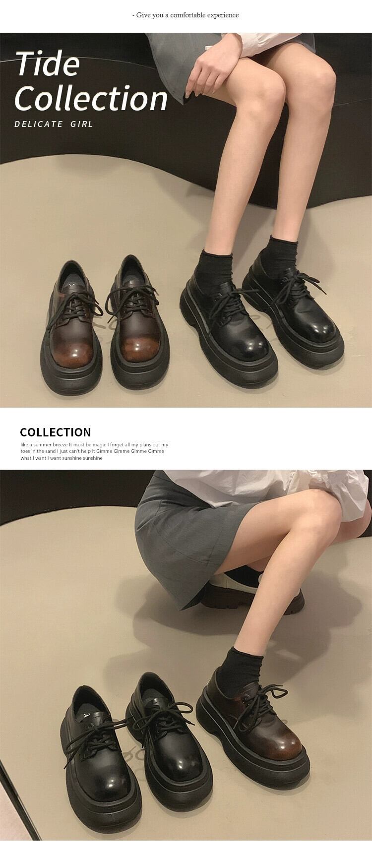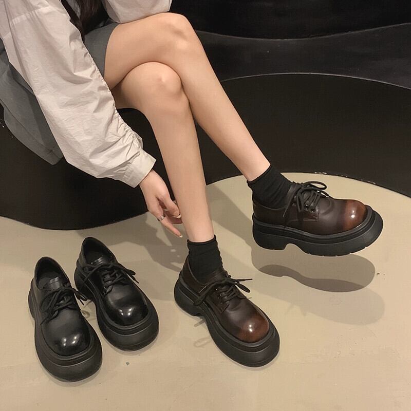Jia Bujia スタイルのシングルシューズの女性 2023 秋の新ファッション多用途学生プラットフォーム厚底 comtable 小さな革靴 オータム 秋物 レザー jxjxf48203691014