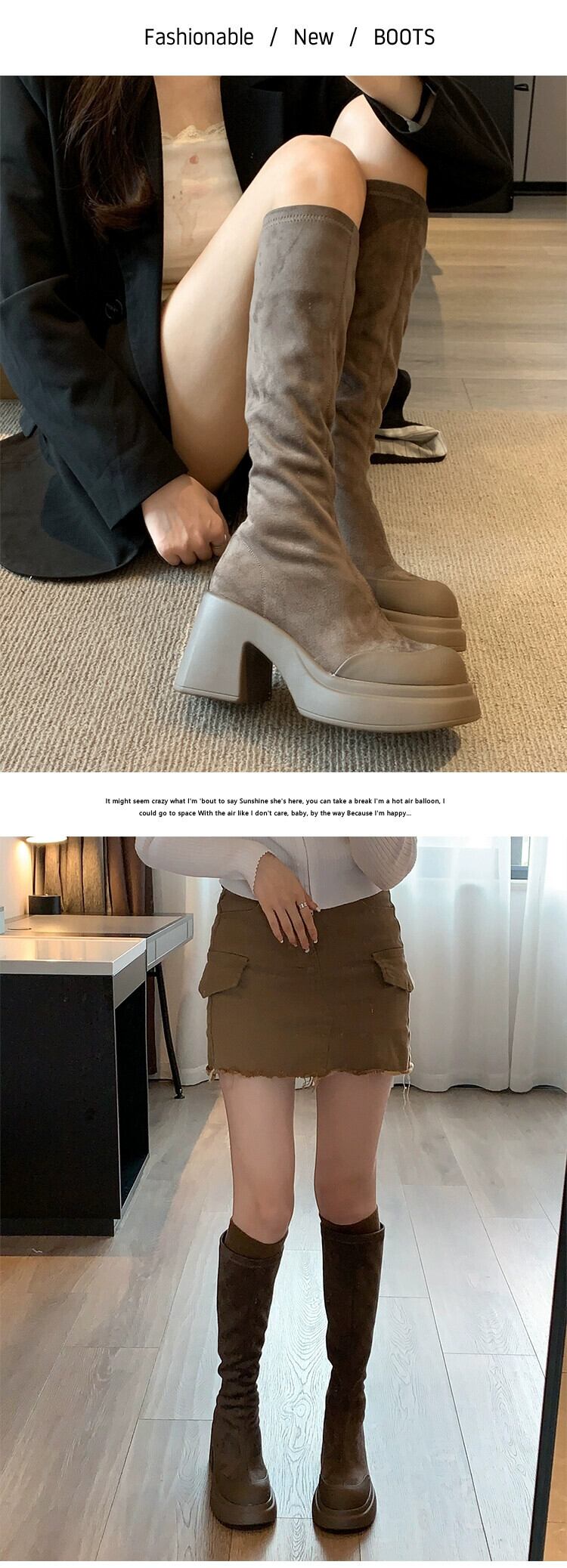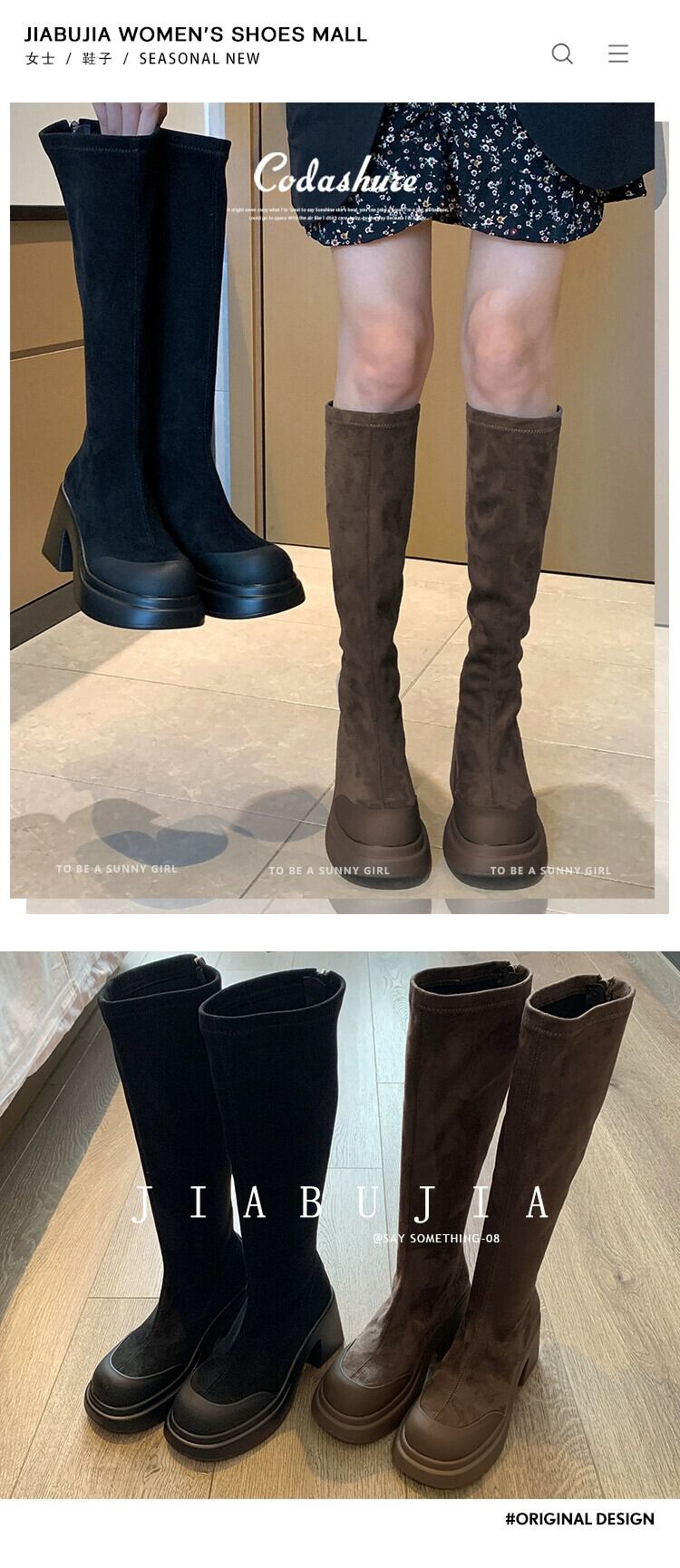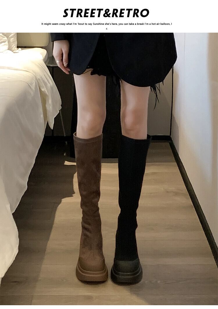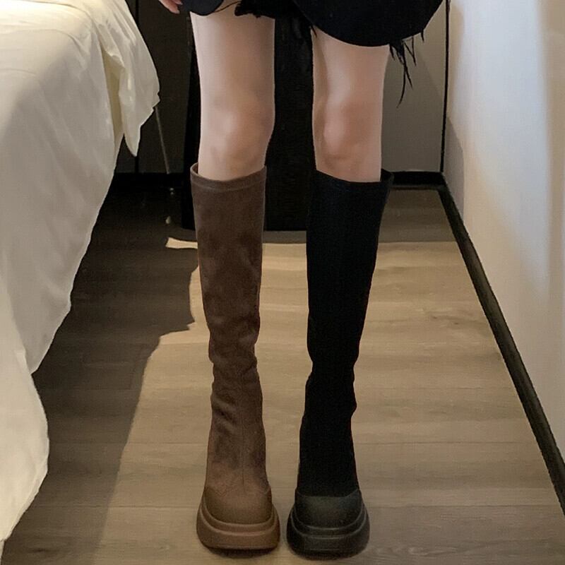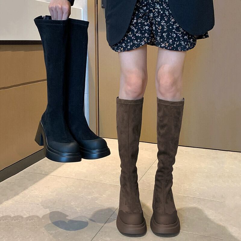 Jia Bujia のニーハイブーツの女性 2023 新しい秋スタイルレトロオールマッチ小さな太いヒールファッショナブルなスリムブーツ 靴 シューズ オータム 秋物 jxjxf82498023259