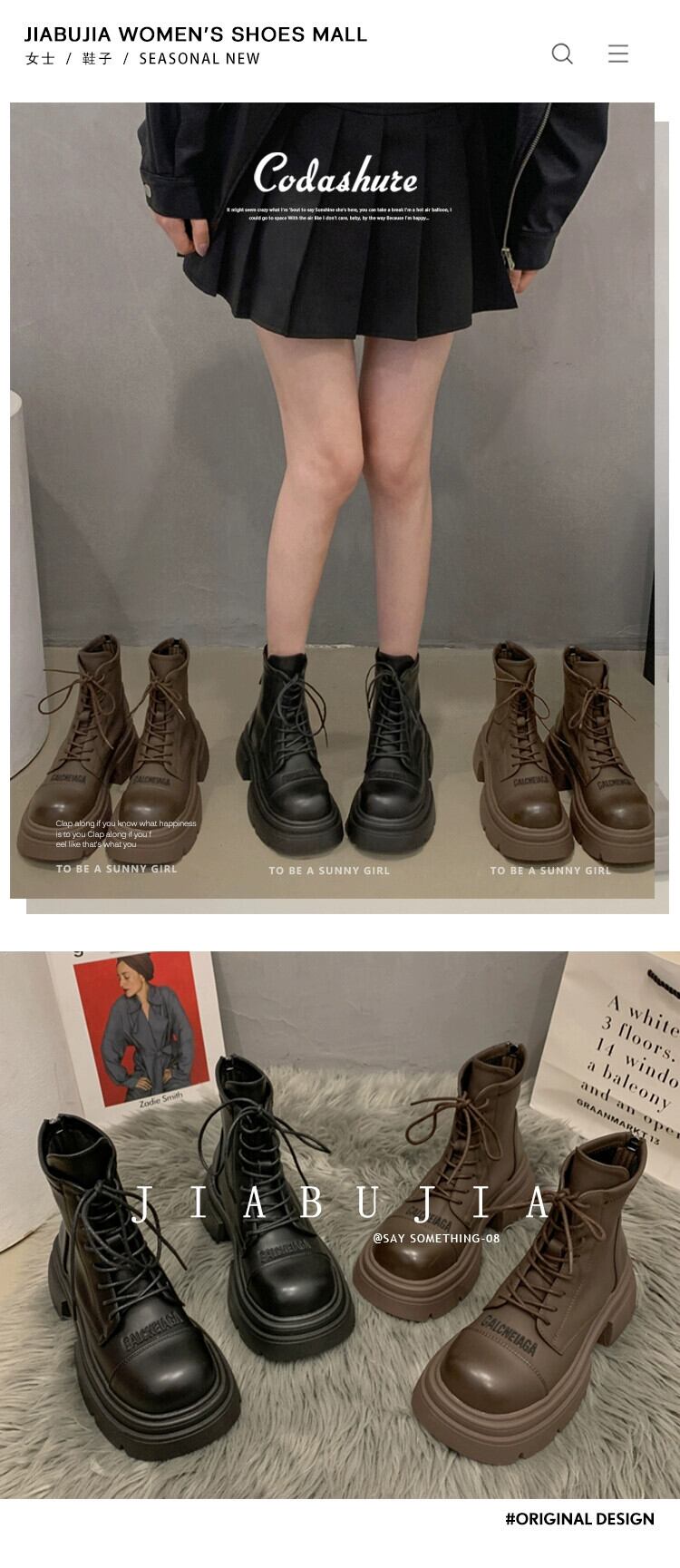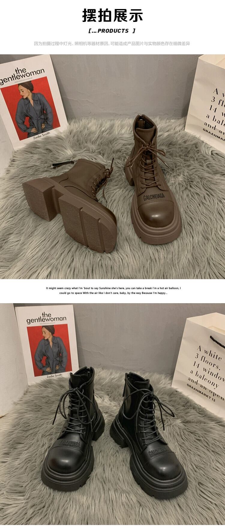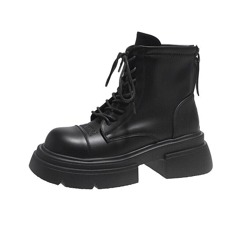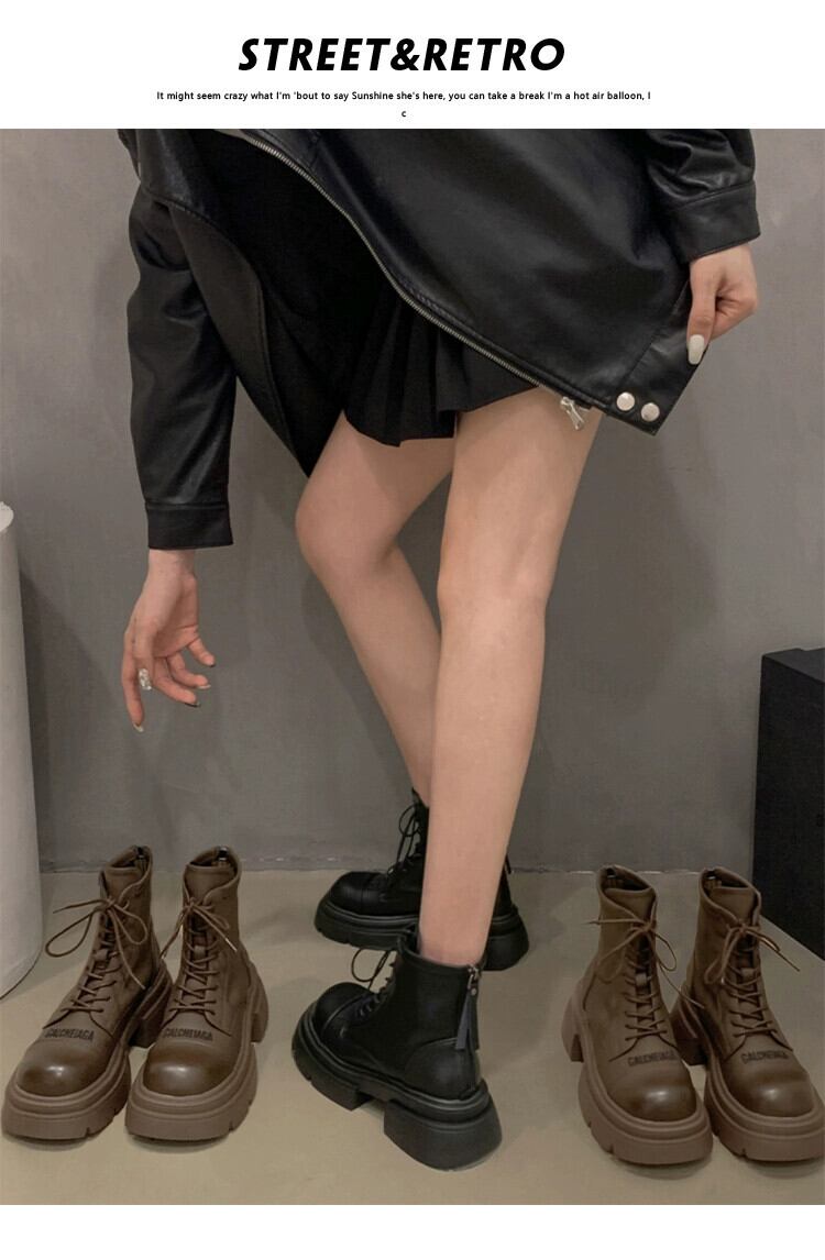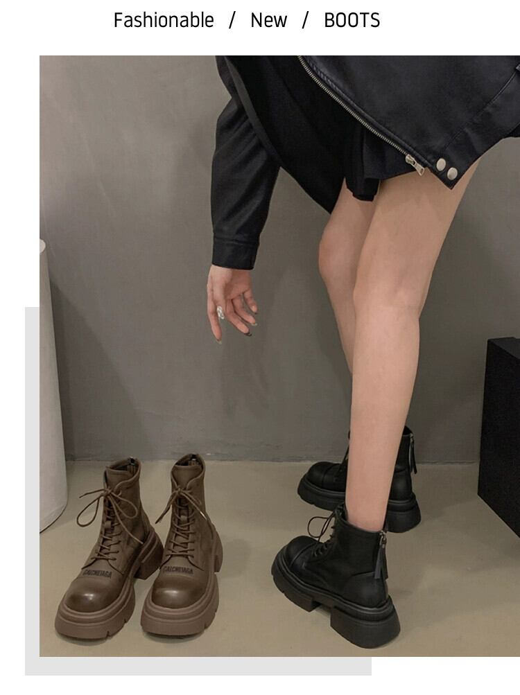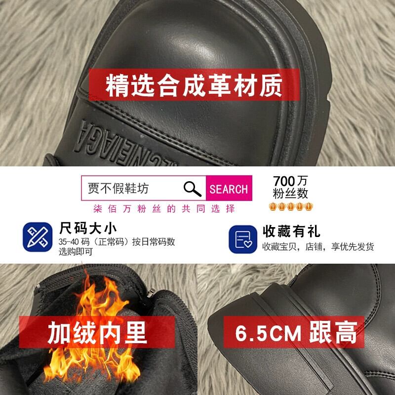 Jia Bujia マーティンブーツ女性の 2023 秋と冬の新しい多用途暖かいプラスベルベット高め太いヒールハンサムなオートバイブーツ 靴 シューズ オータム 秋物 ウィンター 冬物 jxjxf69810468769