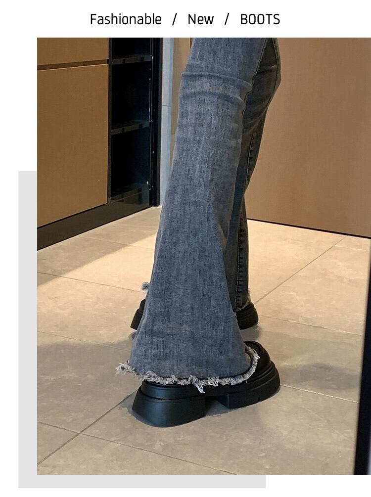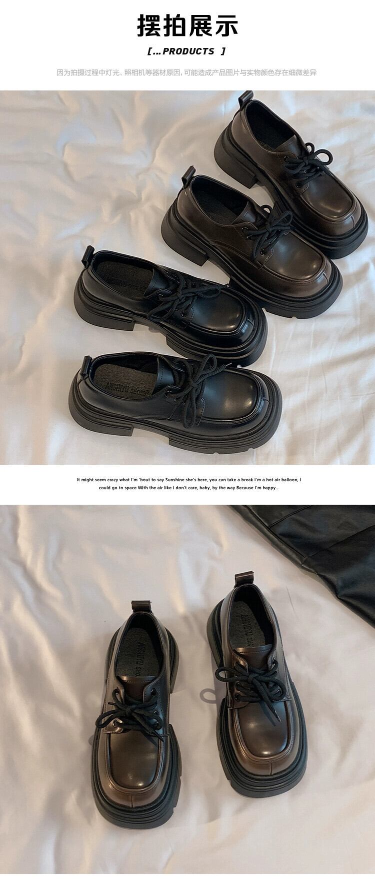 Jia Bujia レディース厚底靴 2023 秋多用途英国風小革靴トレンド シューズ オータム 秋物 レザー jxjxf18218608173