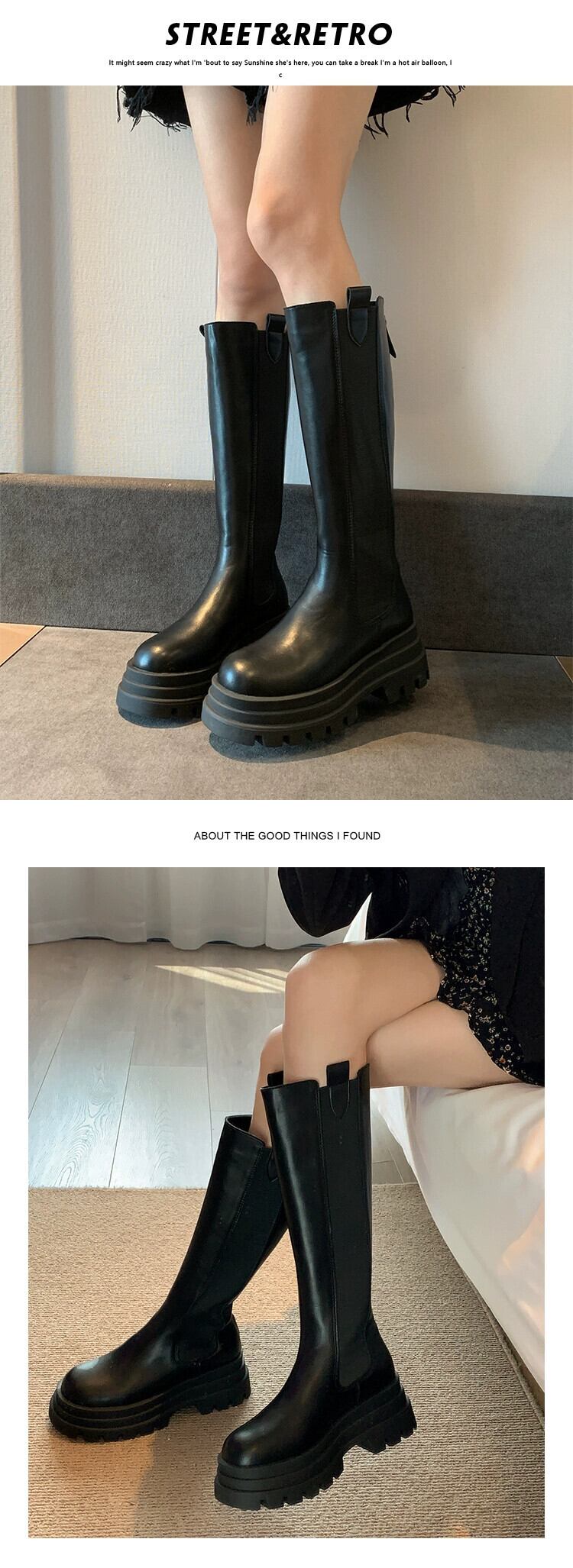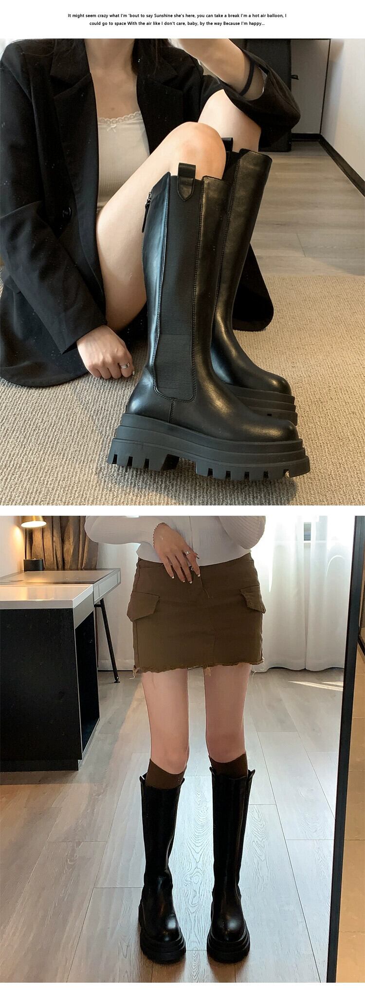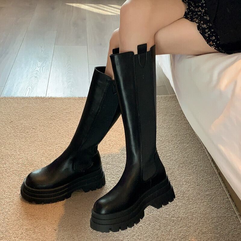 Jia Bufake チェルシーブーツの女性の 2023 秋の新ファッションハイトップレトロな気質厚底スリムブーツトレンド 靴 シューズ オータム 秋物 jxjxf29465962515