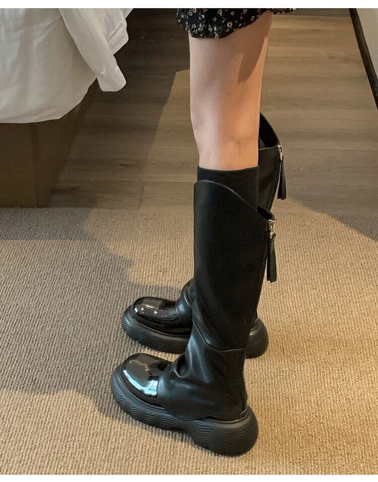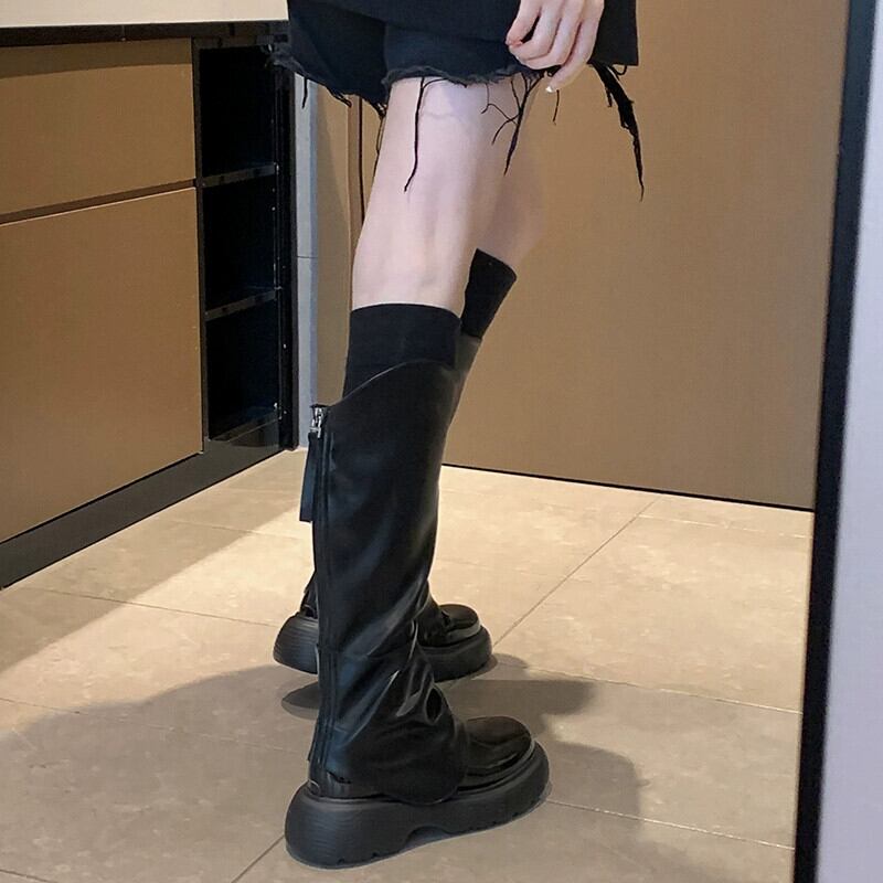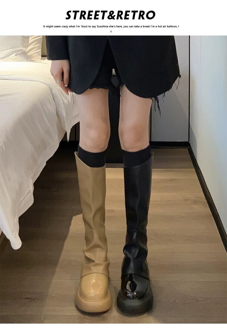 Jia Bujia ニーハイブーツの女性 2023 秋の新ファッションレトロハンサムな小さな厚底騎士ブーツ 靴 シューズ オータム 秋物 jxjxf89201443516