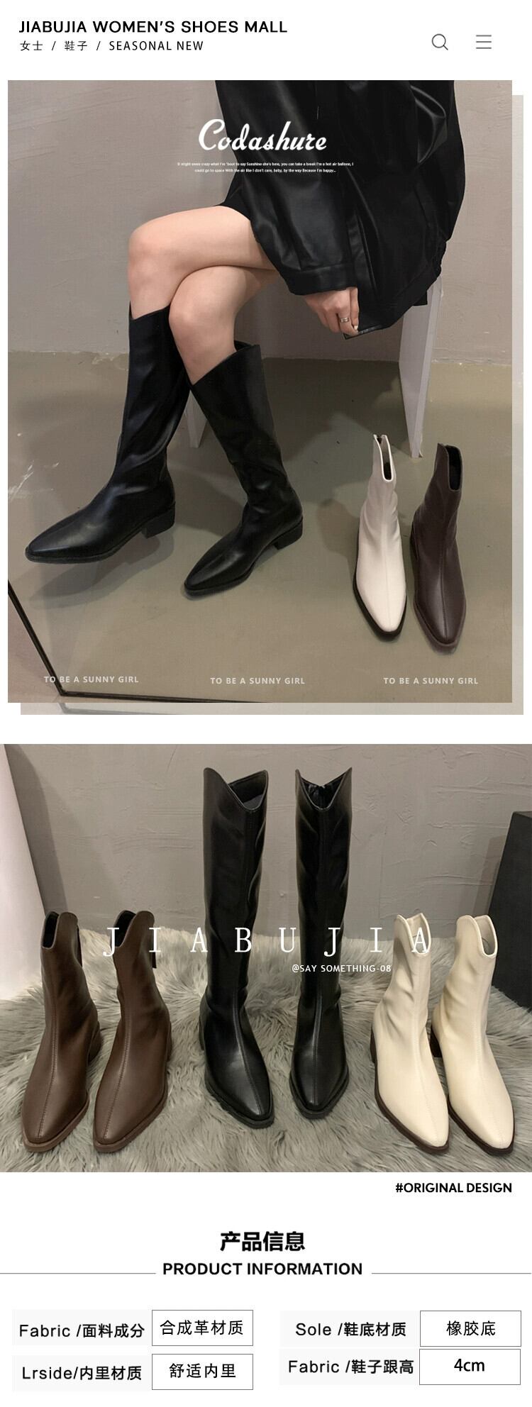 Jia Bujia ポインテッドトゥブーツの女性 2023 秋の新ファッション多用途レトロスリム厚いヒールフレンチスリムブーツ 靴 シューズ オータム 秋物 jxjxf98296126516