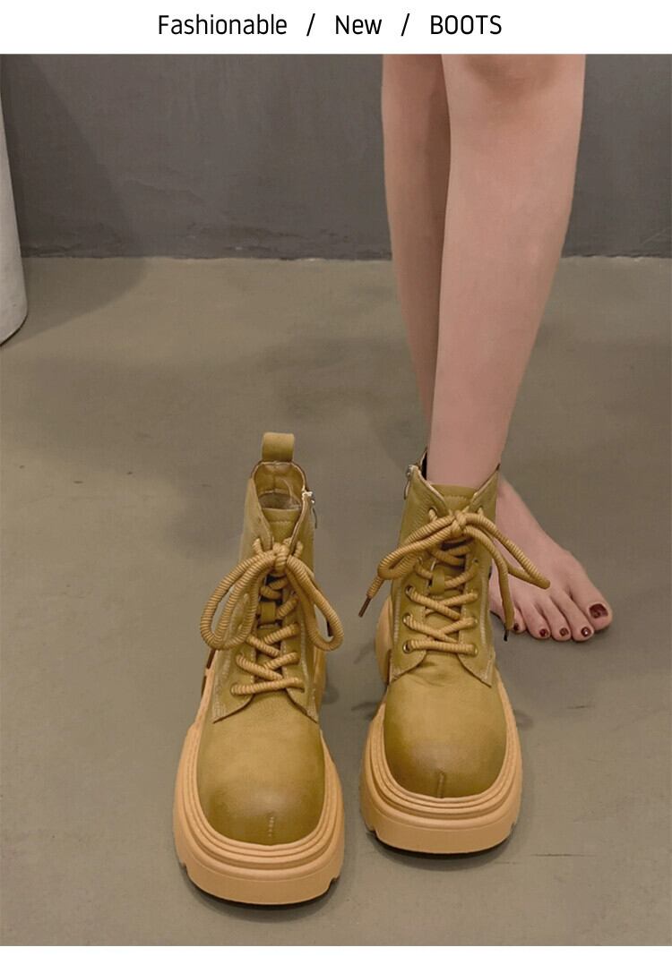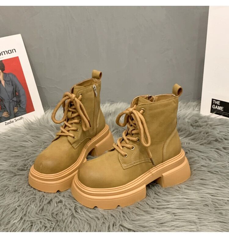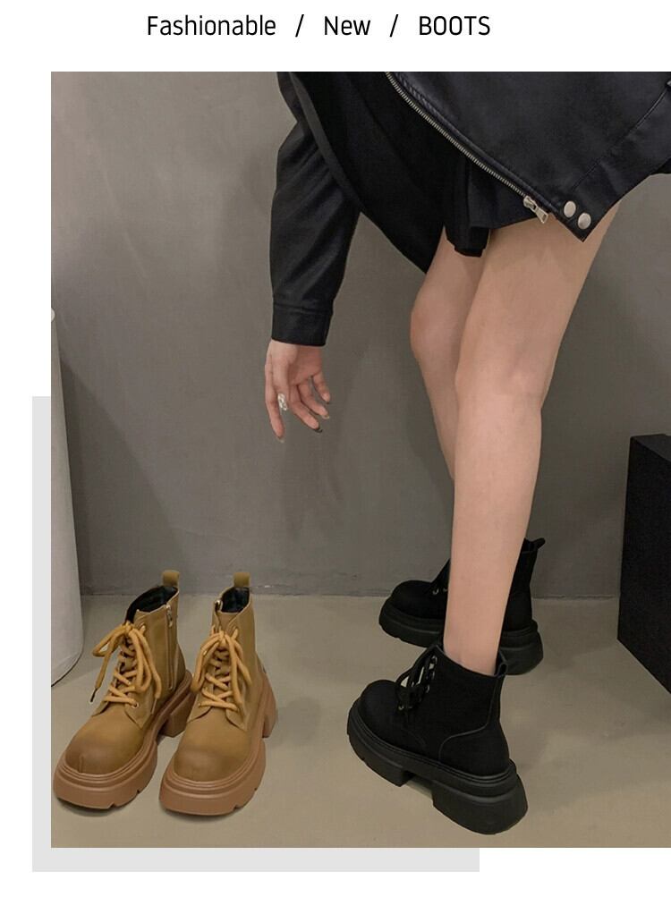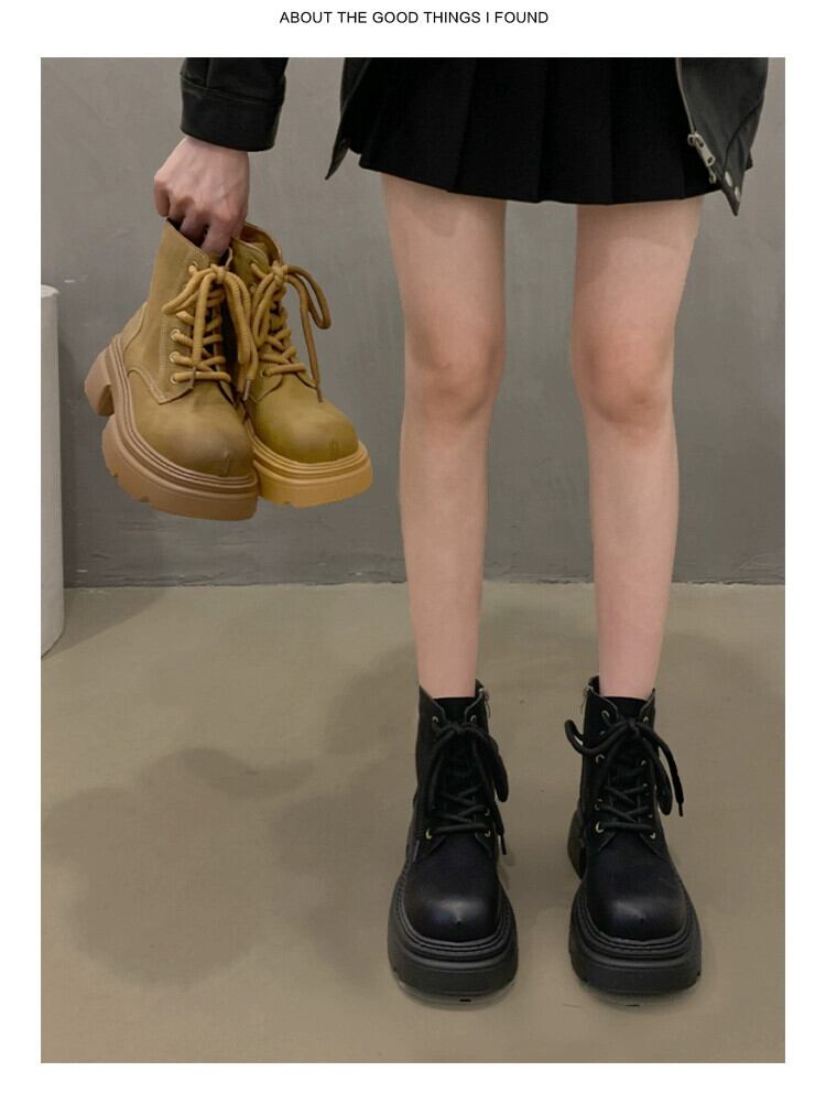 Jia Bujia 厚底マーティンブーツの女性の 2023 秋の新作ファッションアメリカンハンサム増加厚いヒールオートバイブーツ 靴 シューズ オータム 秋物 jxjxf4460349583