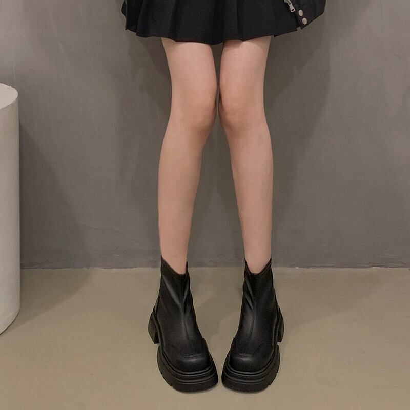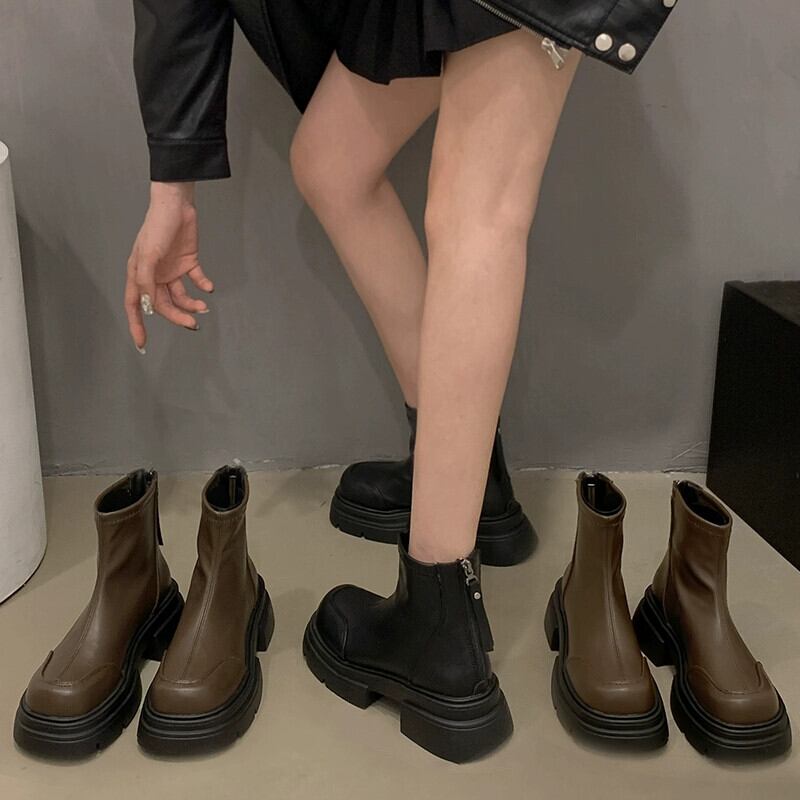 Jia Bufake ショートブーツ女性の 2023 秋フレンチレトロな気質 Comtable 太いヒール弾性スリムブーツ 靴 シューズ エラスティック 伸縮 オータム 秋物 jxjxf93628528755