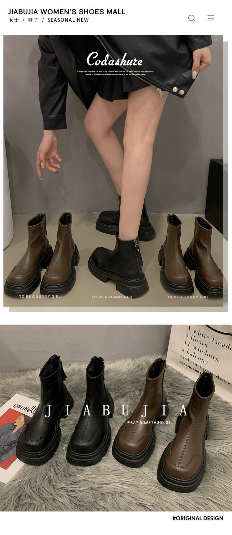 Jia Bujia レディース ショートブーツ 2023 秋の新スタイルレトロシンプルな eign スタイル多用途 comtable 太いヒールスリムブーツトレンディ 靴 シューズ オータム 秋物 jxjxf87340791090