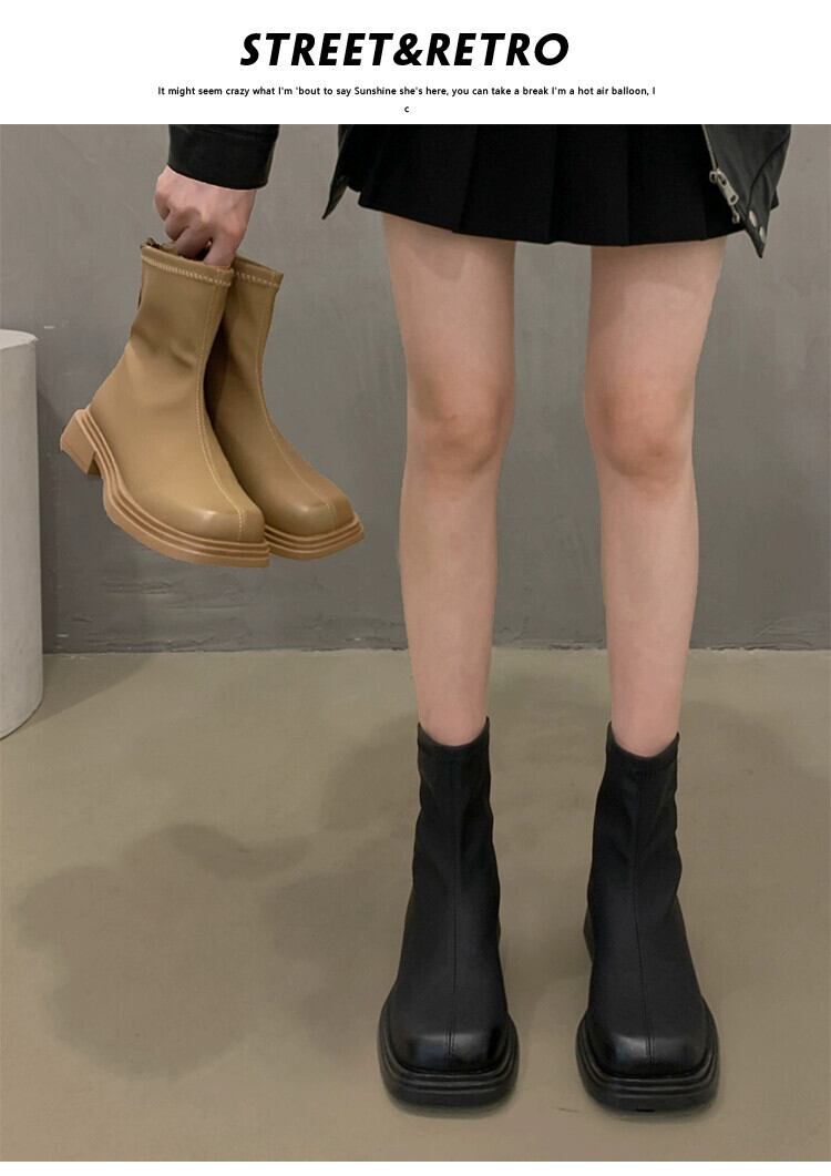 Jia Bujia スクエアトゥショートブーツ女性 2023 秋有能で多用途な痩身西洋スタイル厚いヒールフレンチスリムブーツ 靴 シューズ オータム 秋物 スクウェア jxjxf80504844524