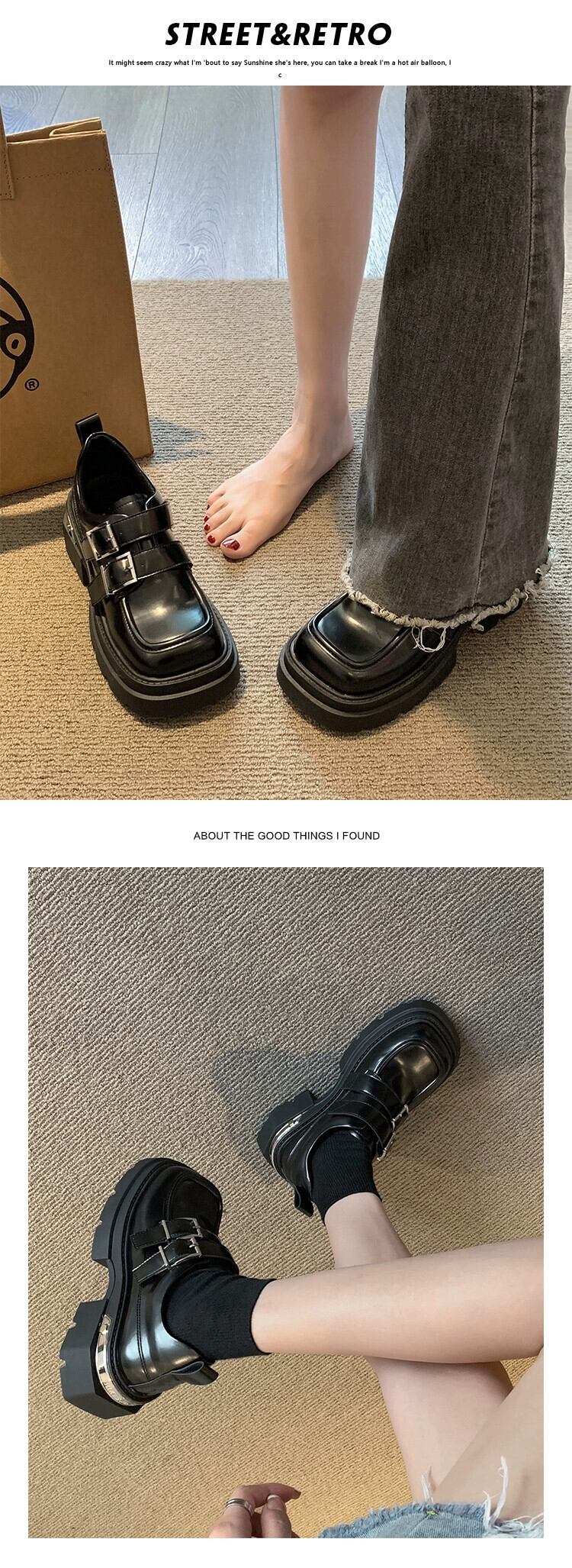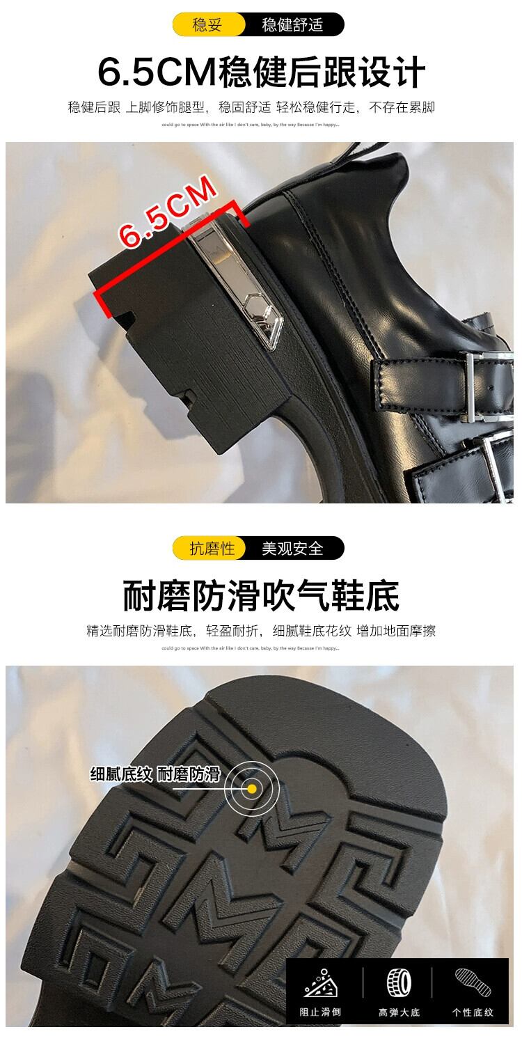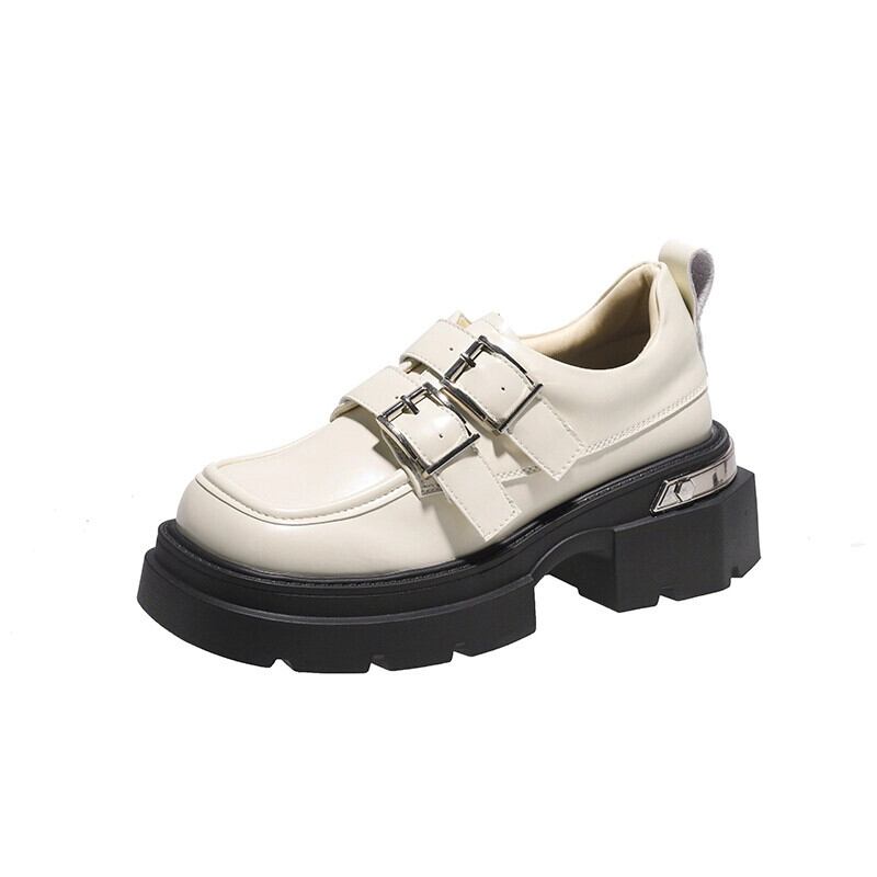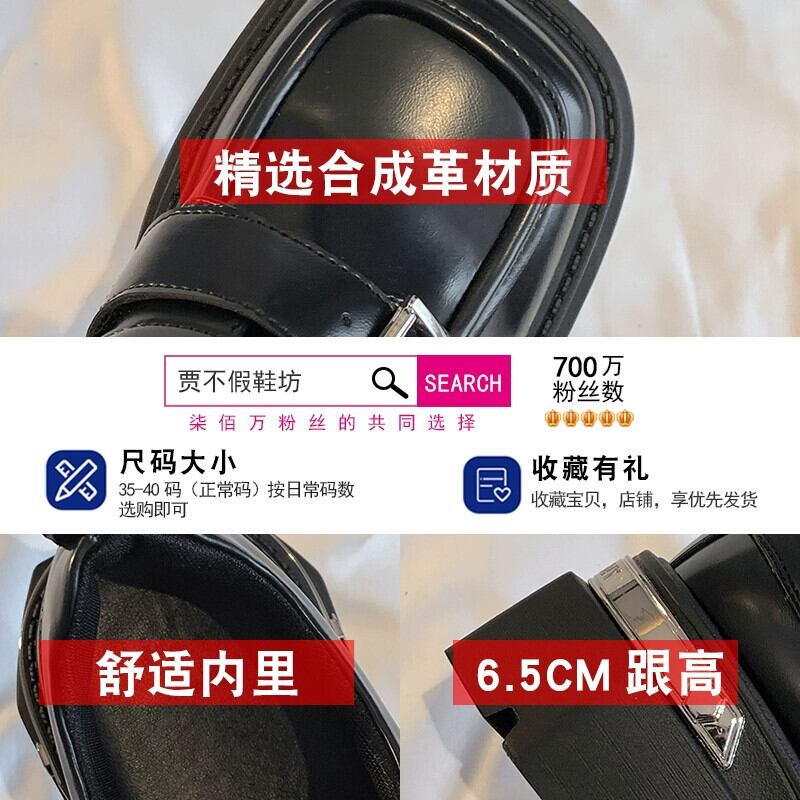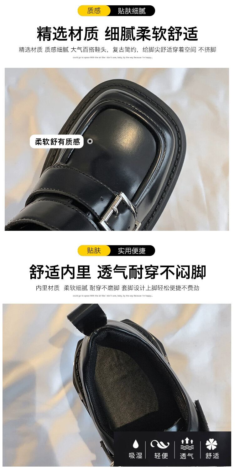 Jia Bujia 秋スタイルの女性の靴 2023 新しい人気のベルトバックルファッション太いヒールスクエアトゥ小さな革靴 シューズ オータム 秋物 レザー ハーネス スクウェア jxjxf80424265481