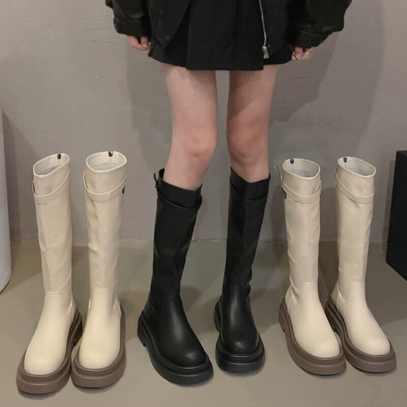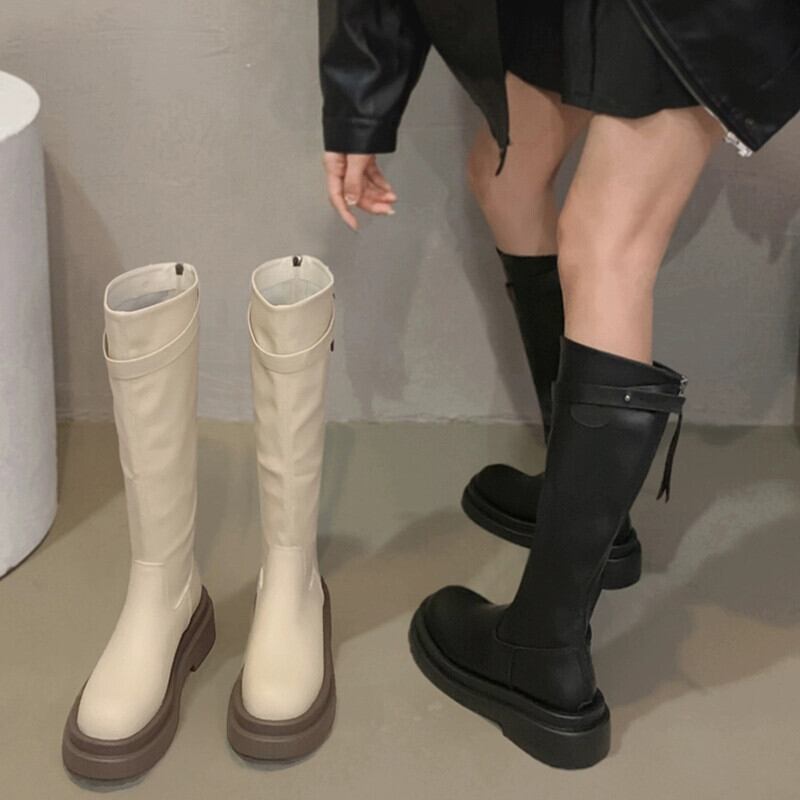 Jia Bufake ブーツの女性 2023 秋の新ファッション多用途レトロハンサム厚底ニーハイスリムブーツ 靴 シューズ オータム 秋物 jxjxf61268352204