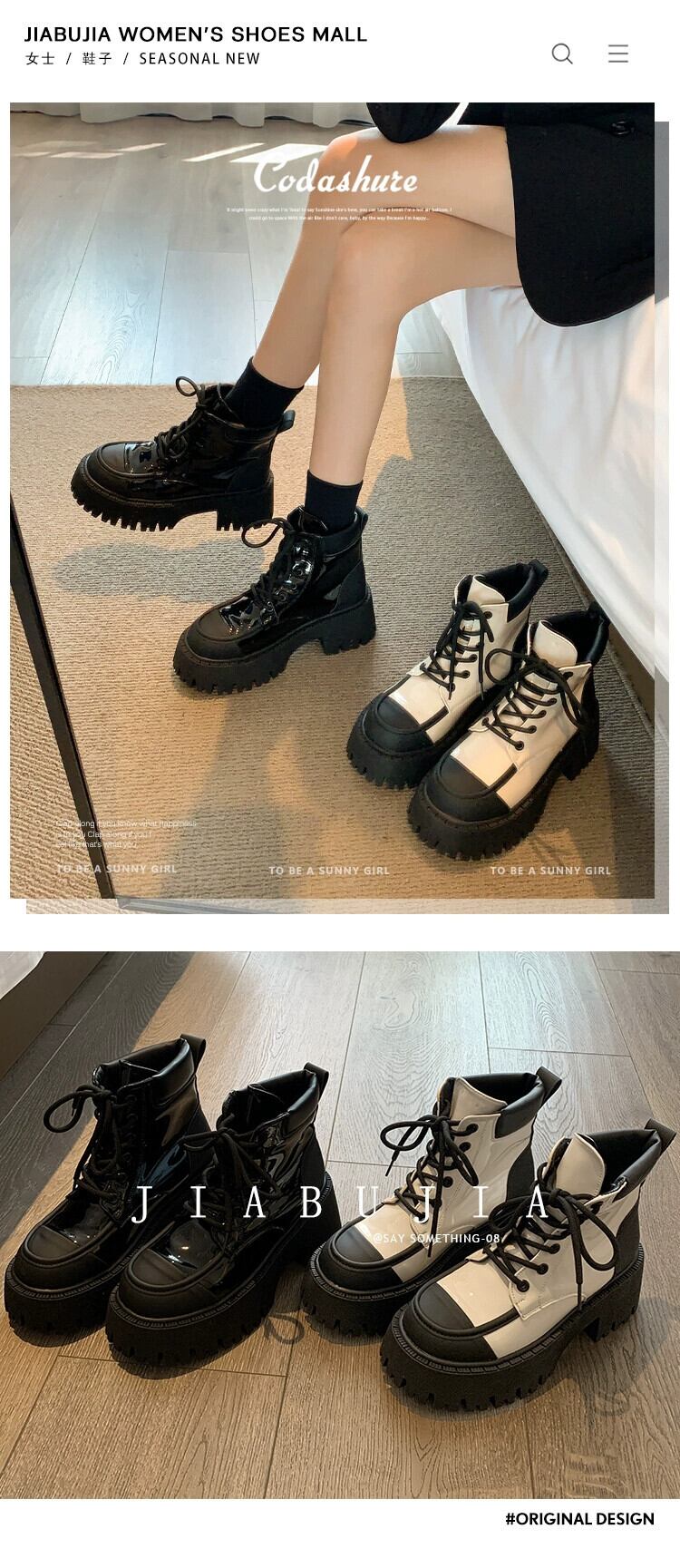 Jia Bujia 秋のショートブーツの女性 2023 新スタイルスーパーレトロハンサム少し厚底オートバイマーティンブーツトレンディな 靴 シューズ オータム 秋物 jxjxf83697052559