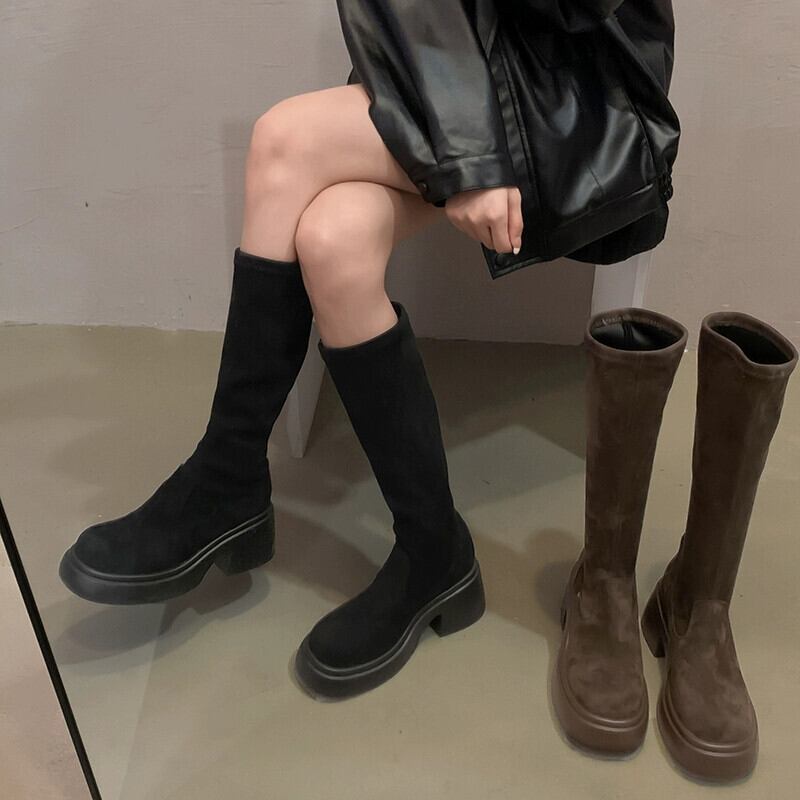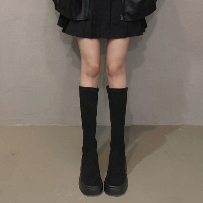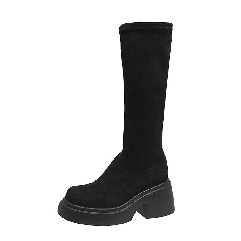Jia Bujia 秋のストレッチブーツの女性 2023 レトロな気質スリム厚底多用途スリムブーツ 靴 シューズ オータム 秋物 jxjxf59313564084