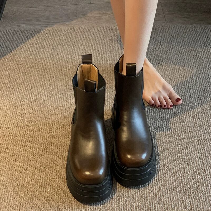 Jia Bujia チェルシーブーツの女性 2023 新しい秋スタイルレトロな気質シンプルなファッション太いヒール弾性ショートブーツ 靴 シューズ エラスティック 伸縮 オータム 秋物 jxjxf31502725075