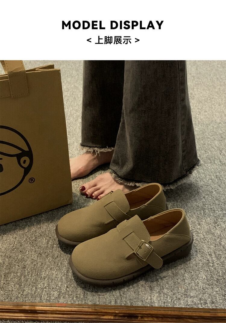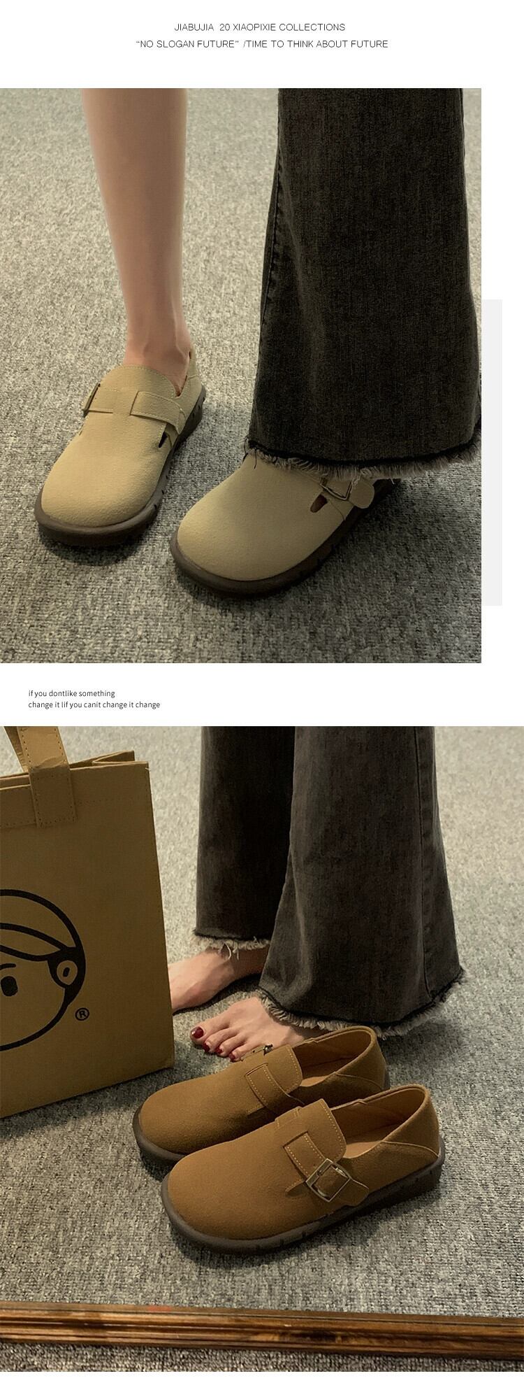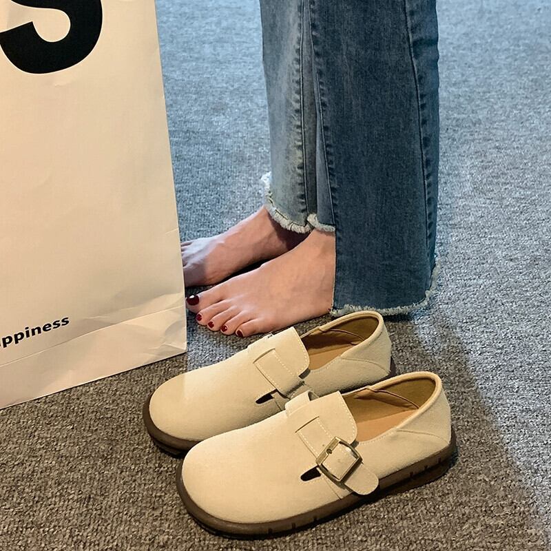 Jia Bujia スタイルシングルシューズ女性 2023 秋の新ファッションスタイルベルトバックル平底 comtable ビーニーシューズトレンディな 靴 オータム 秋物 ハーネス jxjxf33234636758
