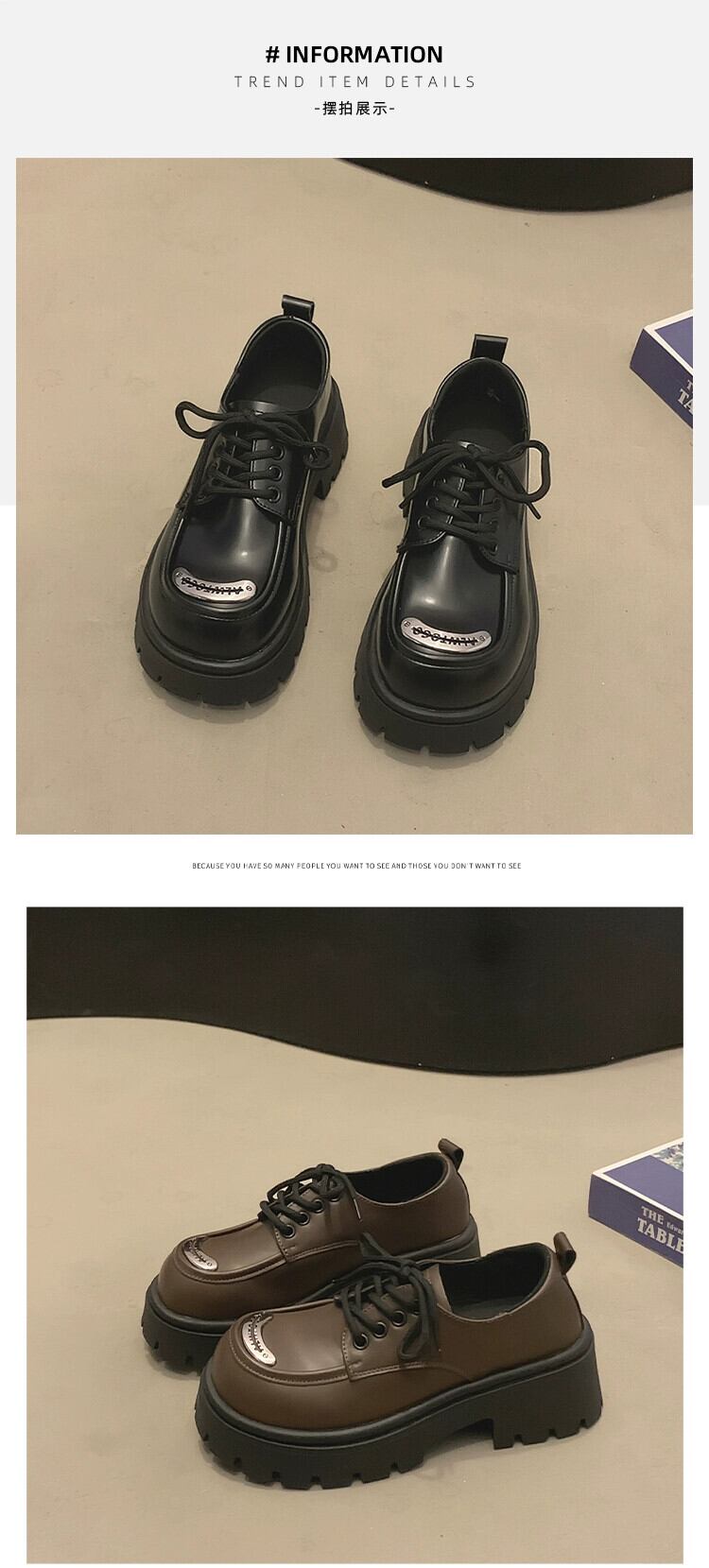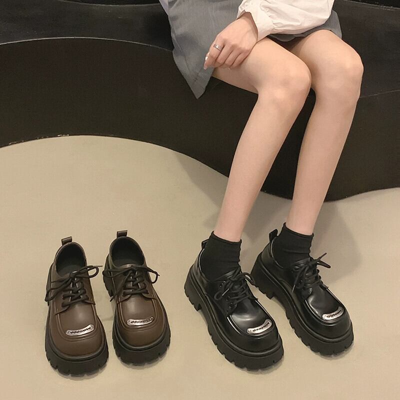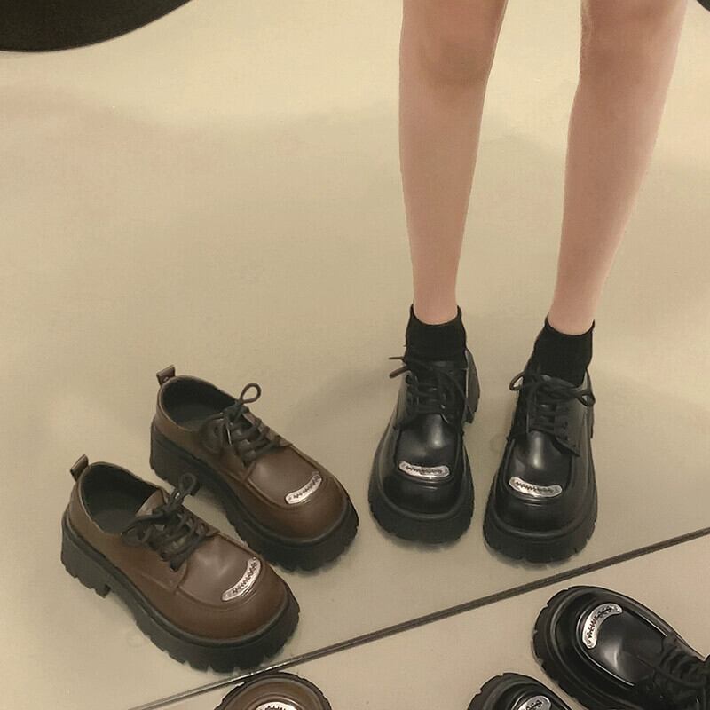 Jia Bufake シングルシューズの女性 2023 秋の新ファッションレトロ多用途小型厚底英国スタイルの小さな革靴 オータム 秋物 レザー jxjxf70292490657