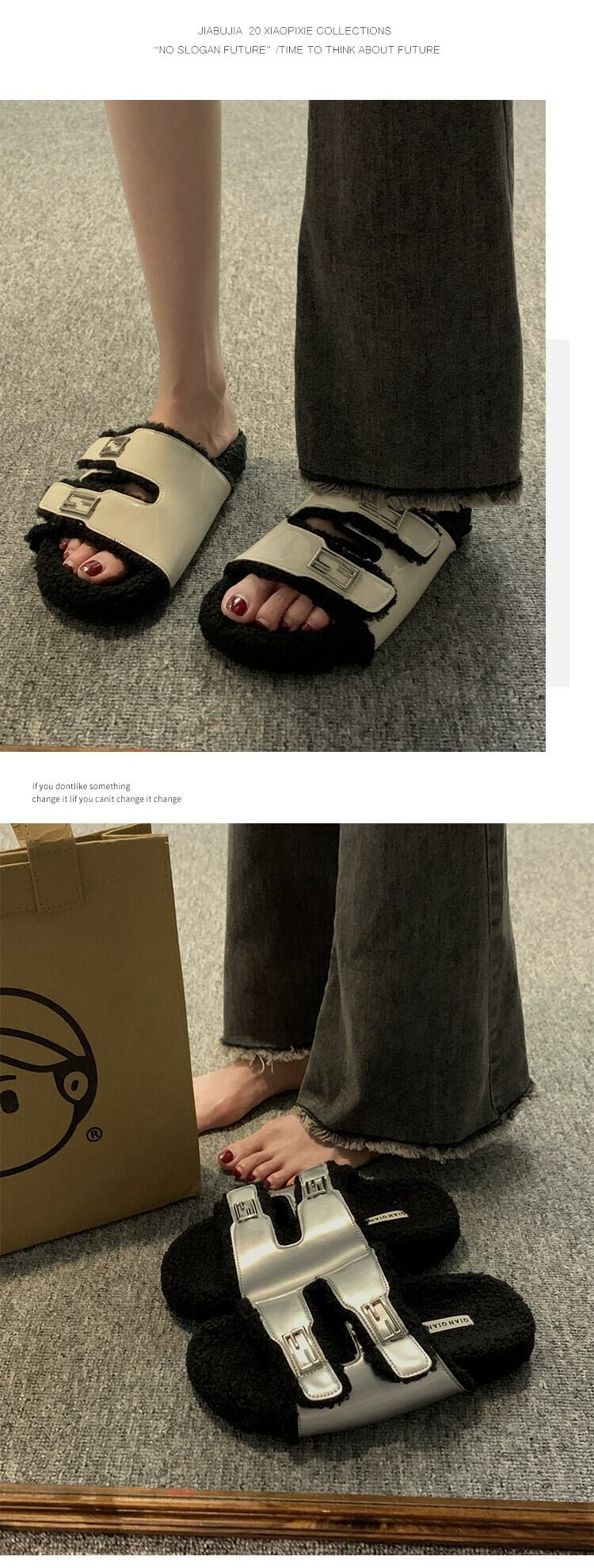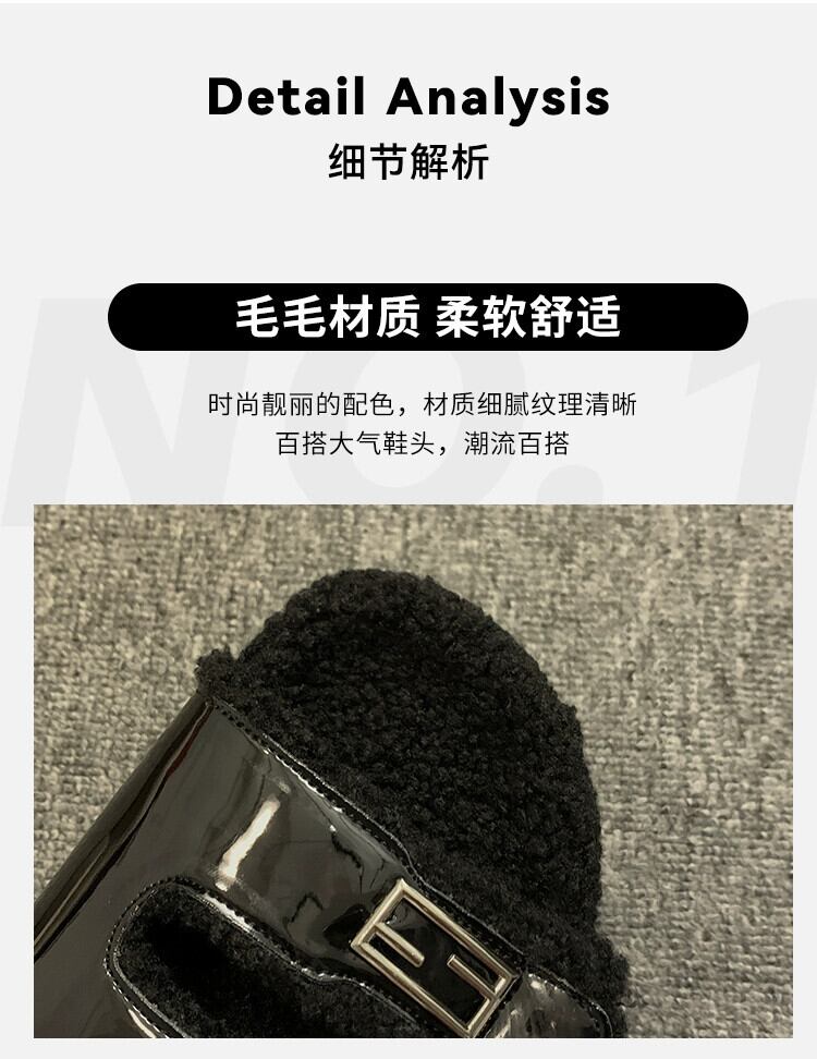 Jia Bujia スリッパ レディース、2023 秋の新スタイル、ファッショナブルなベルトバックル、厚底ファースリッパ ミュール 靴 シューズ オータム 秋物 ハーネス jxjxf88427052557