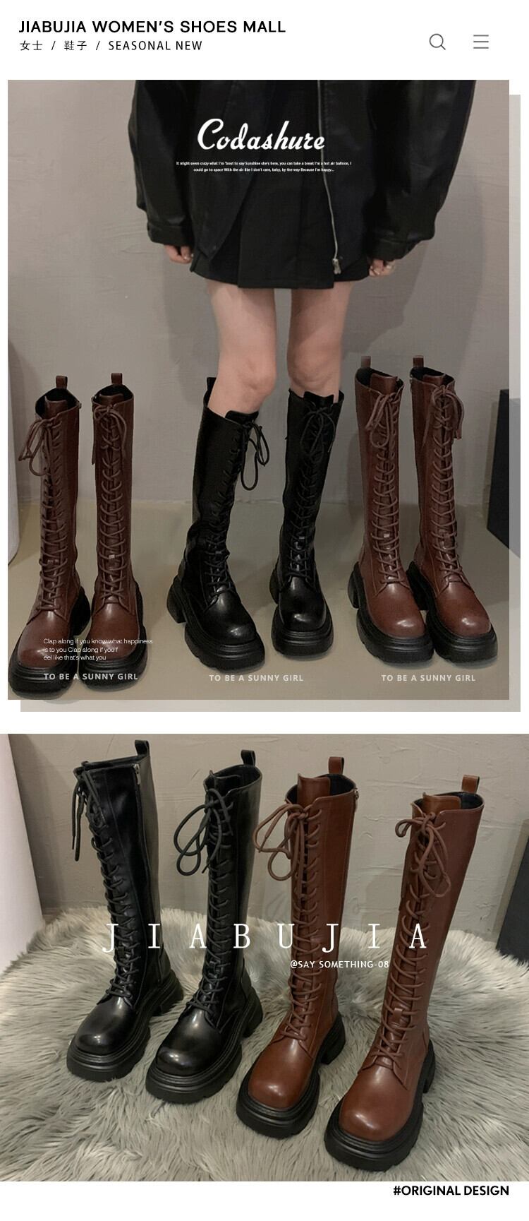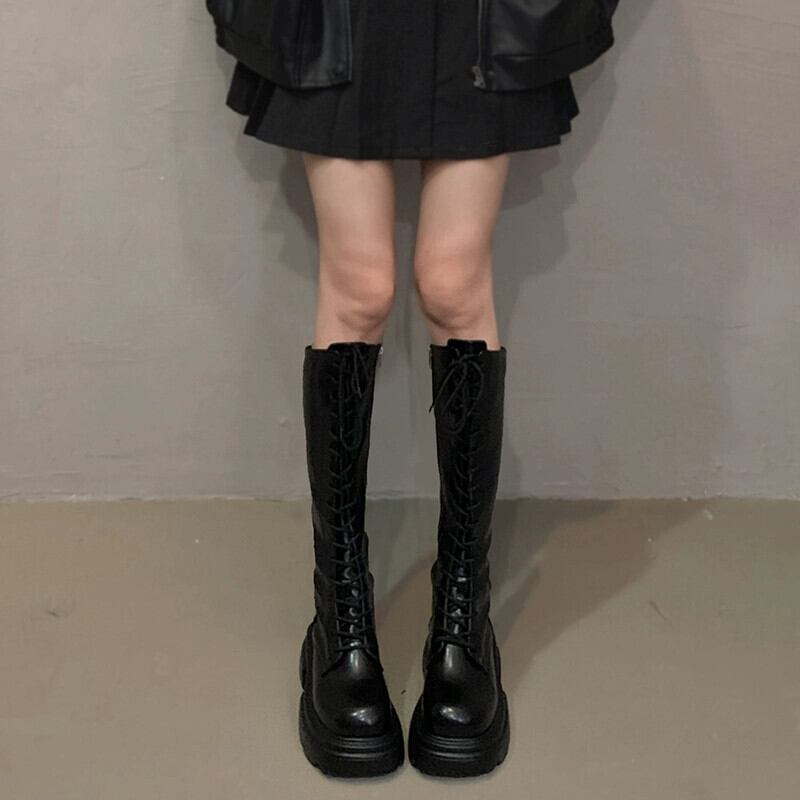 Jia Bujia インターネット有名人のブーツの女性 2023 秋の新ファッション多用途レトロハンサム厚底ストリートナイトブーツ 靴 シューズ オータム 秋物 jxjxf44126073192