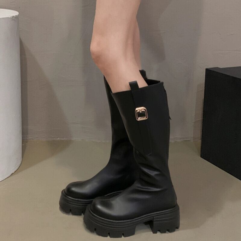 Jia Bujia フレンチブーツの女性 2023 秋の新ファッションファッション小さな太いヒール eign スタイルスリムブーツ 靴 シューズ オータム 秋物 jxjxf75274536343
