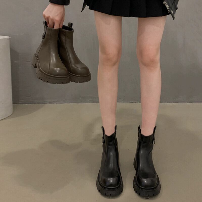 Jia Bujia ブーツショートブーツ女性 2023 秋の新スーパーファッション多用途スリムフレンチ厚いヒールブーツ 靴 シューズ オータム 秋物 jxjxf27886491628