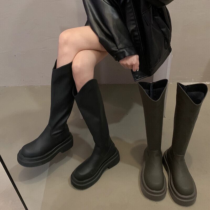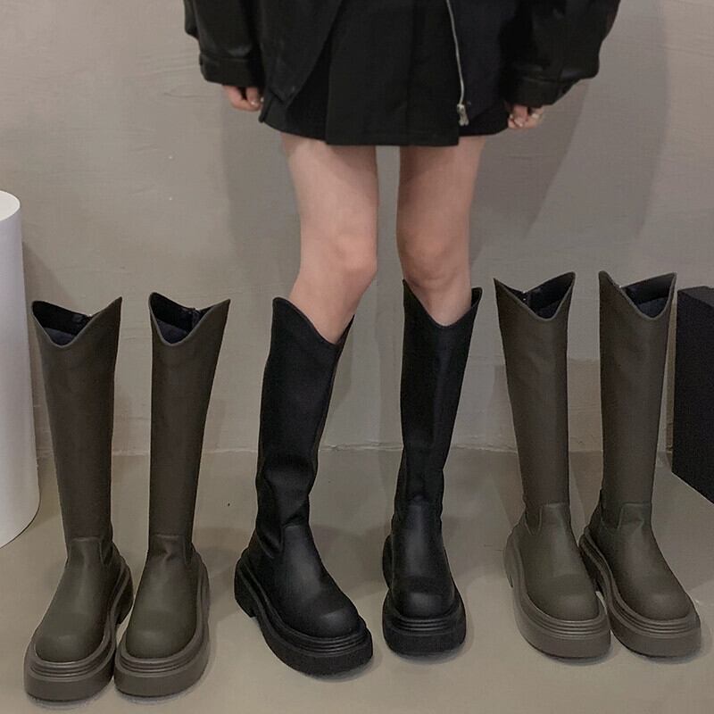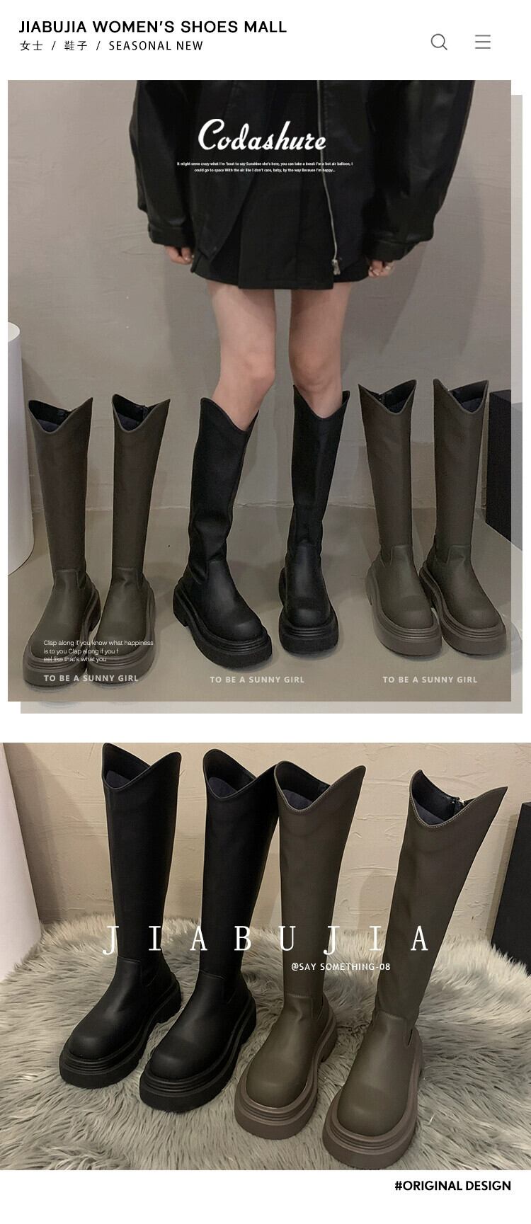 Jia Bufake ブーツの女性 2023 秋の新スタイルのインターネット有名人レトロスリムでハンサムな厚底非落下ナイトブーツ 靴 シューズ オータム 秋物 jxjxf84175127814