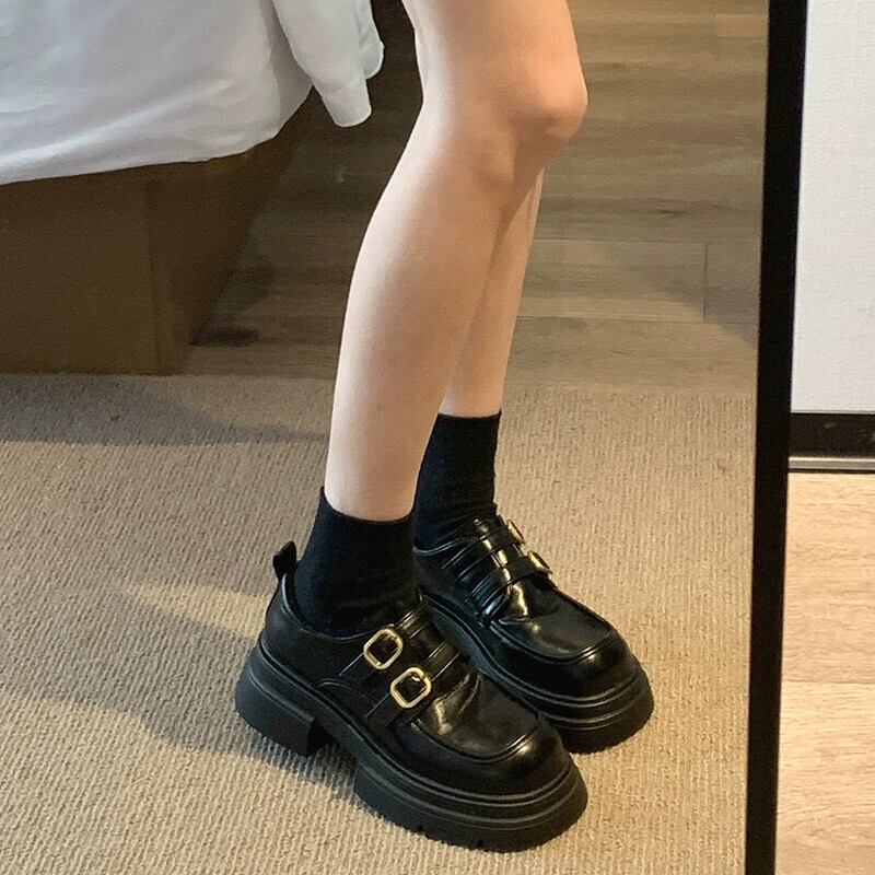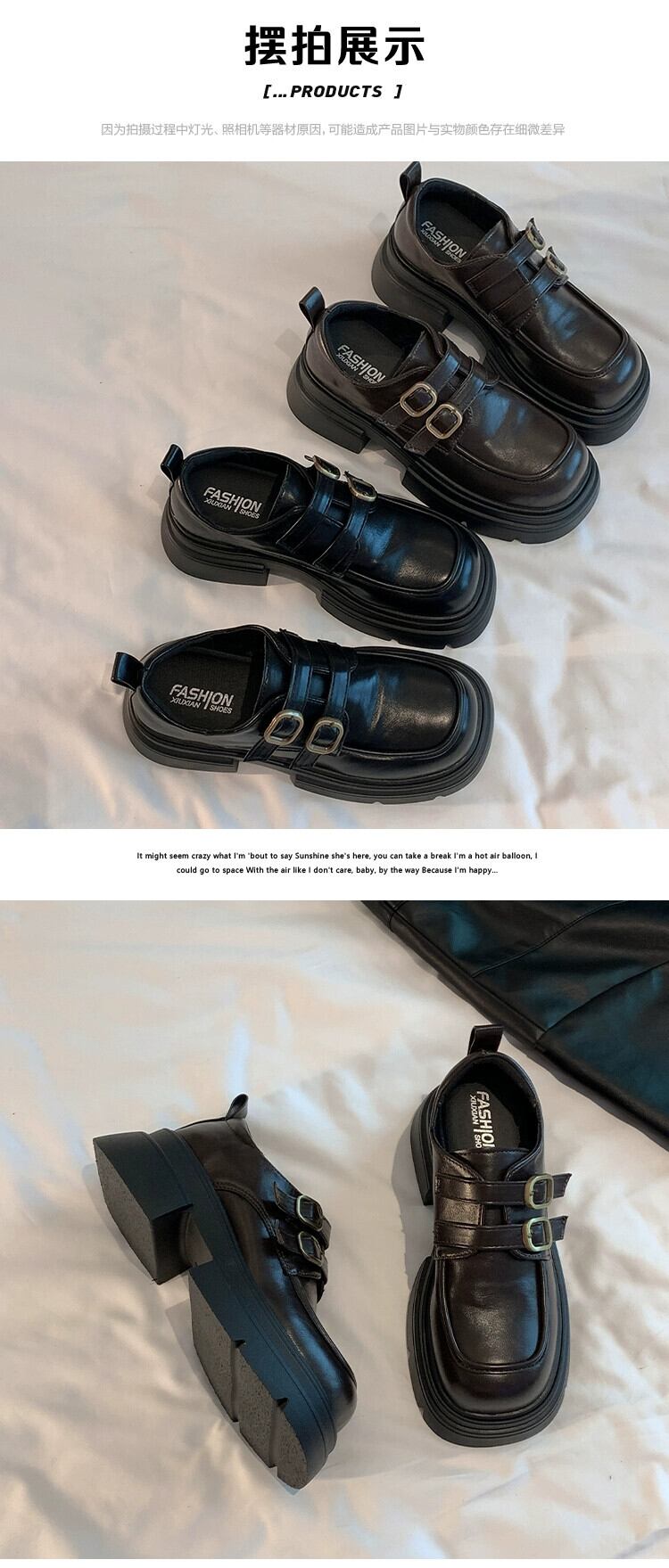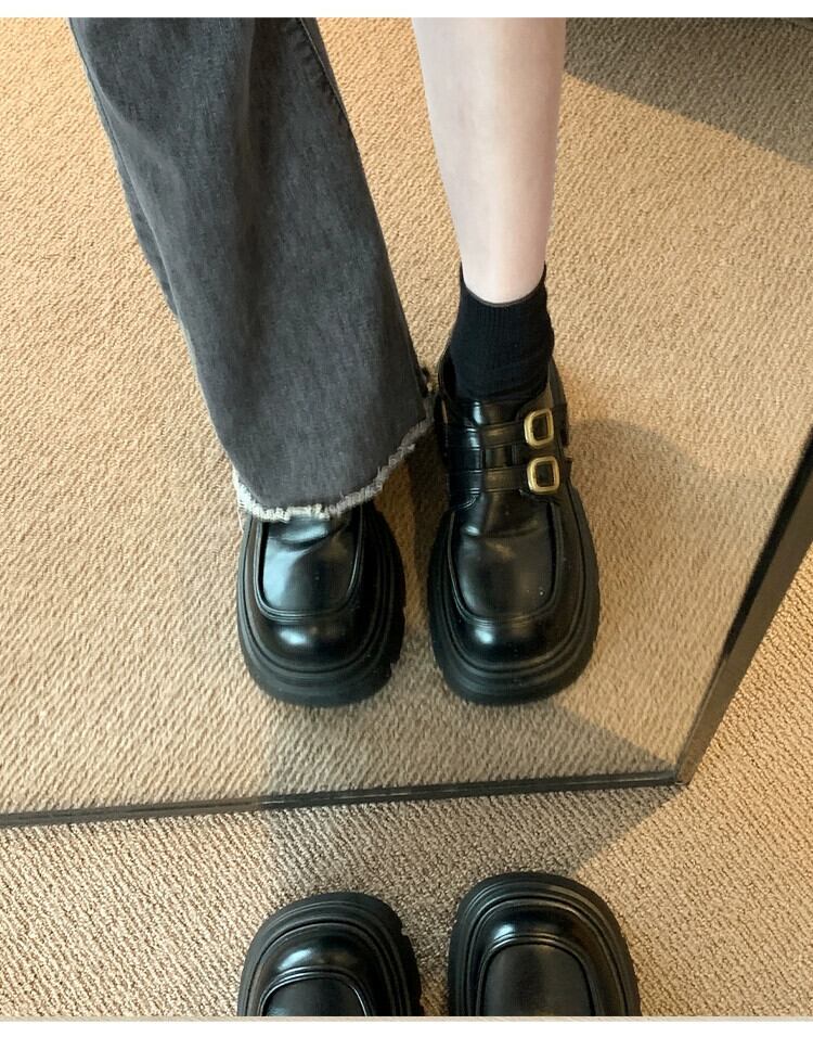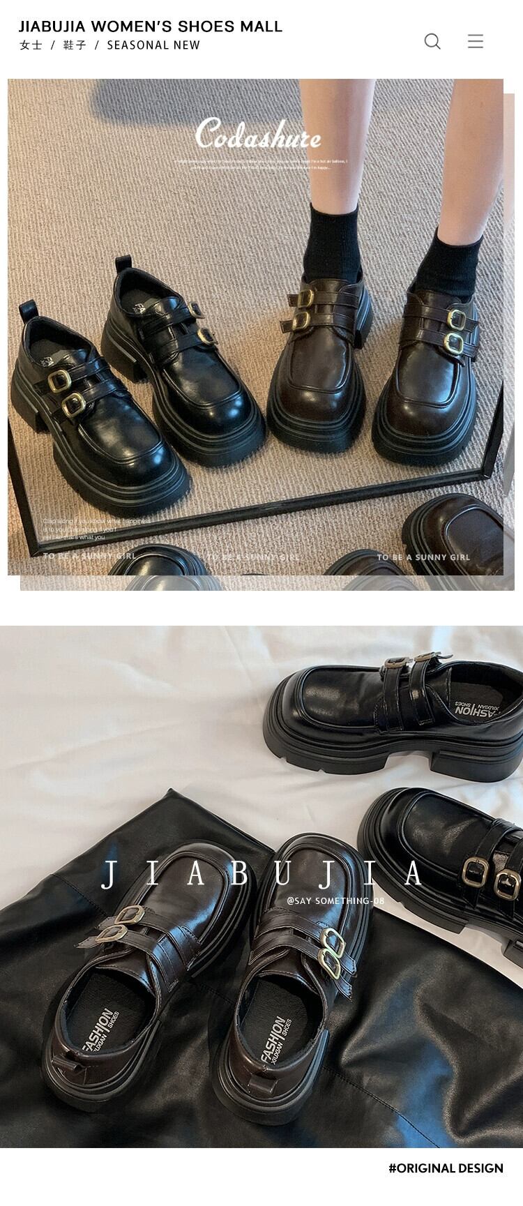 Jia Bufake 厚いヒールの小さな革の靴の女性 2023 秋の新スタイルのベルトバックルレトロ高めローファートレンド シューズ オータム 秋物 レザー ハーネス jxjxf68386914232