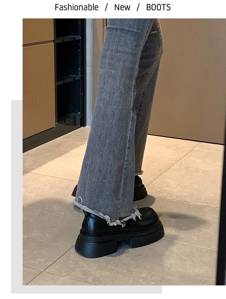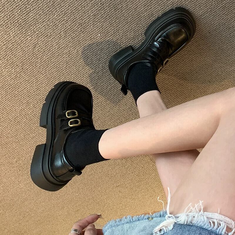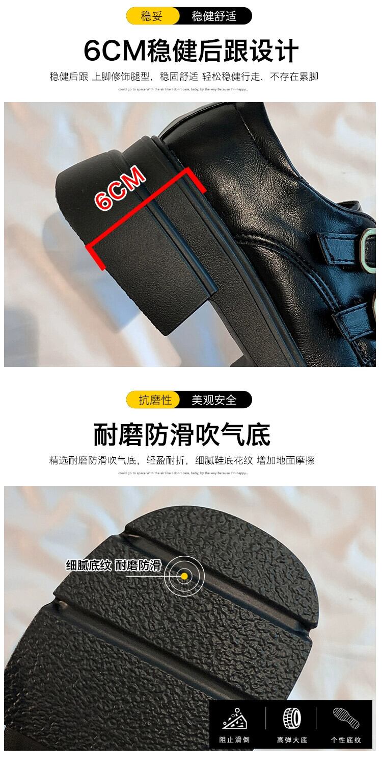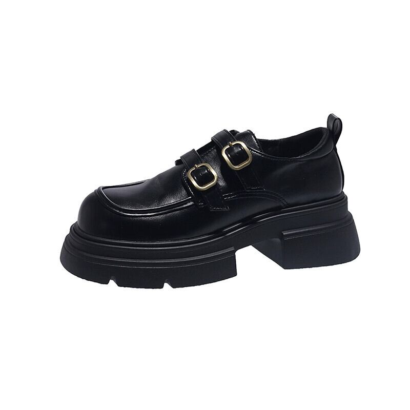 Jia Bufake 厚いヒールの小さな革の靴の女性 2023 秋の新スタイルのベルトバックルレトロ高めローファートレンド シューズ オータム 秋物 レザー ハーネス jxjxf68386914232