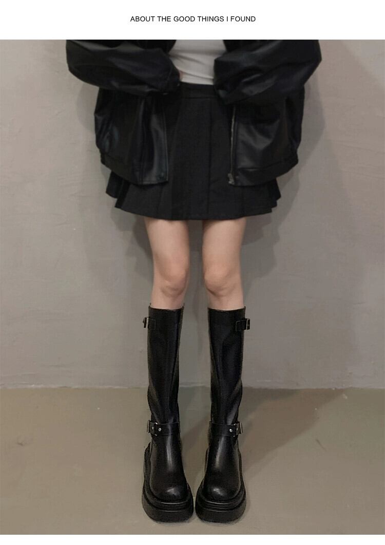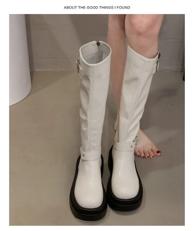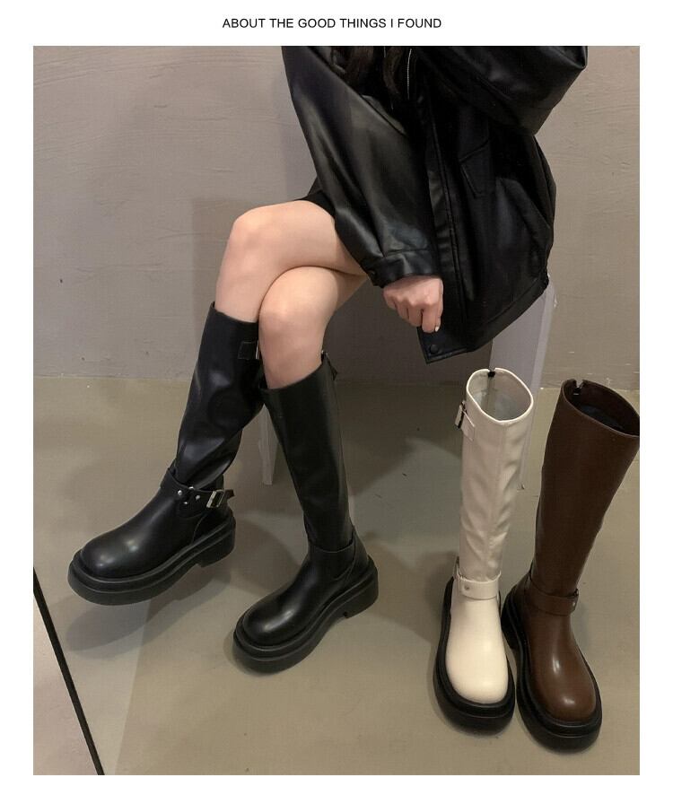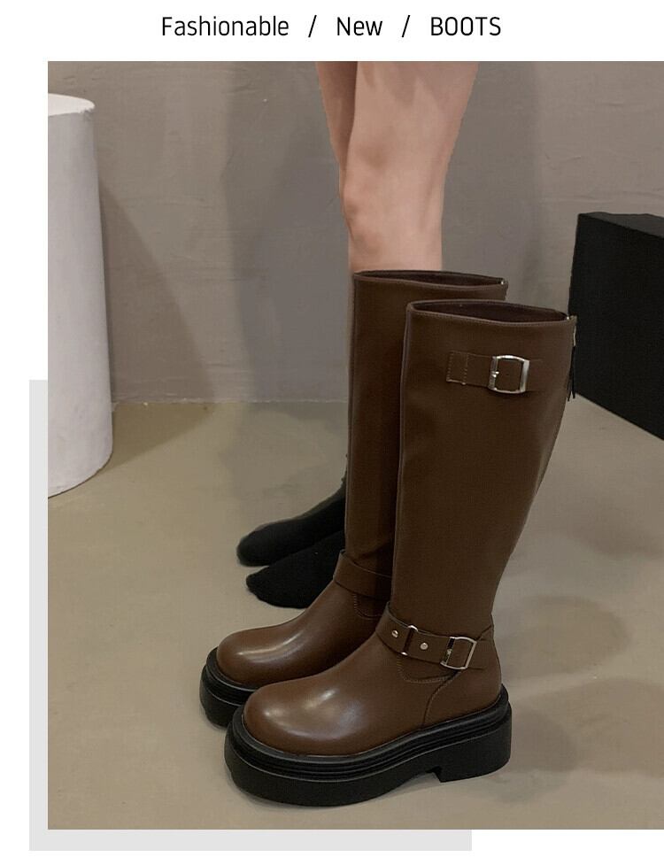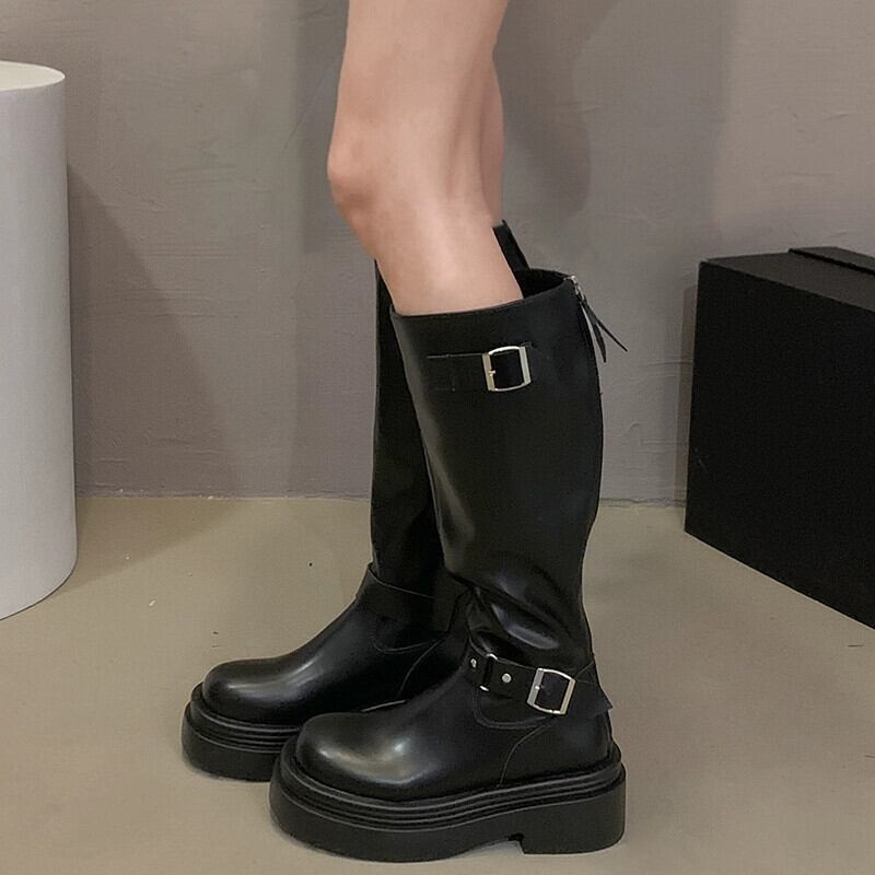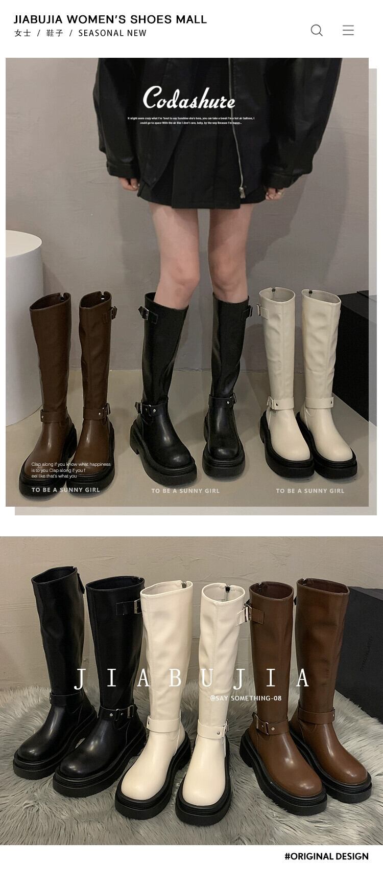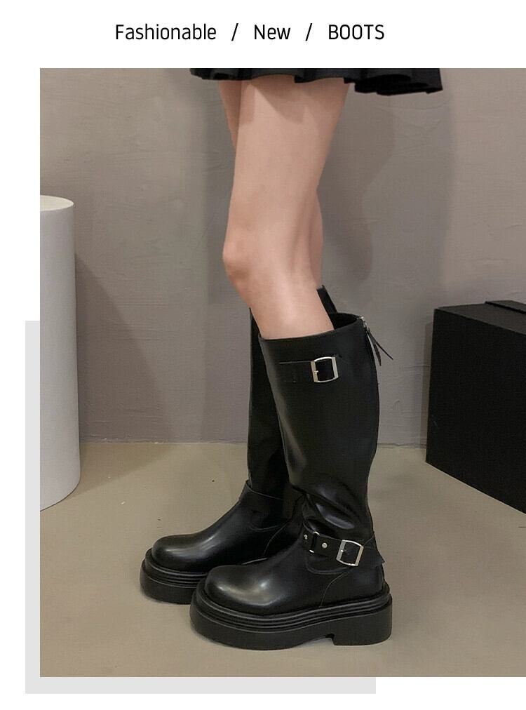 Jia Bujia ニーハイブーツの女性 2023 秋の新ファッションレトロベルトバックル厚底スリムブーツ 靴 シューズ オータム 秋物 ハーネス jxjxf22575214394
