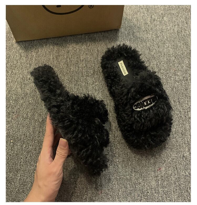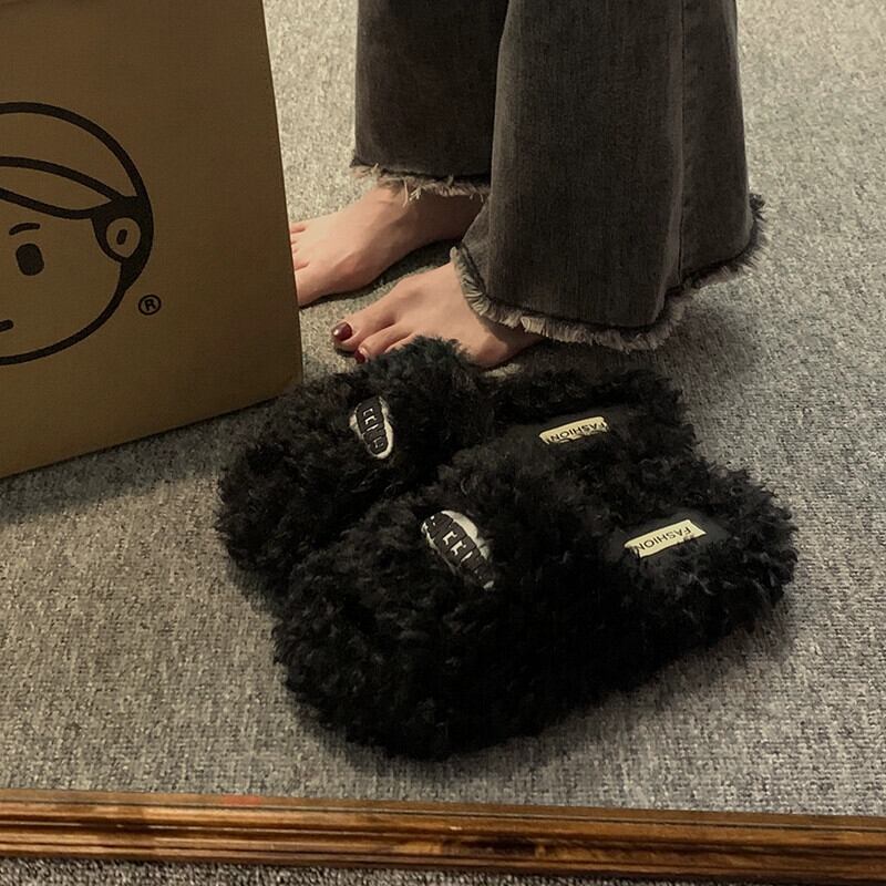 Jia Bujia インターネット有名人のスリッパ女性 2023 秋の新ファッションファッショナブルな多用途レトロスタイルの平底の毛皮のスリッパ ミュール 靴 シューズ オータム 秋物 jxjxf41853479542