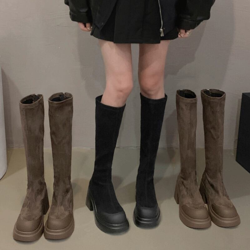 Jia Bujia 非落下ブーツ女性 2023 秋の新レトロスタイルの小さなハイヒール滑り止めスリムブーツ 靴 シューズ オータム 秋物 jxjxf87662047646
