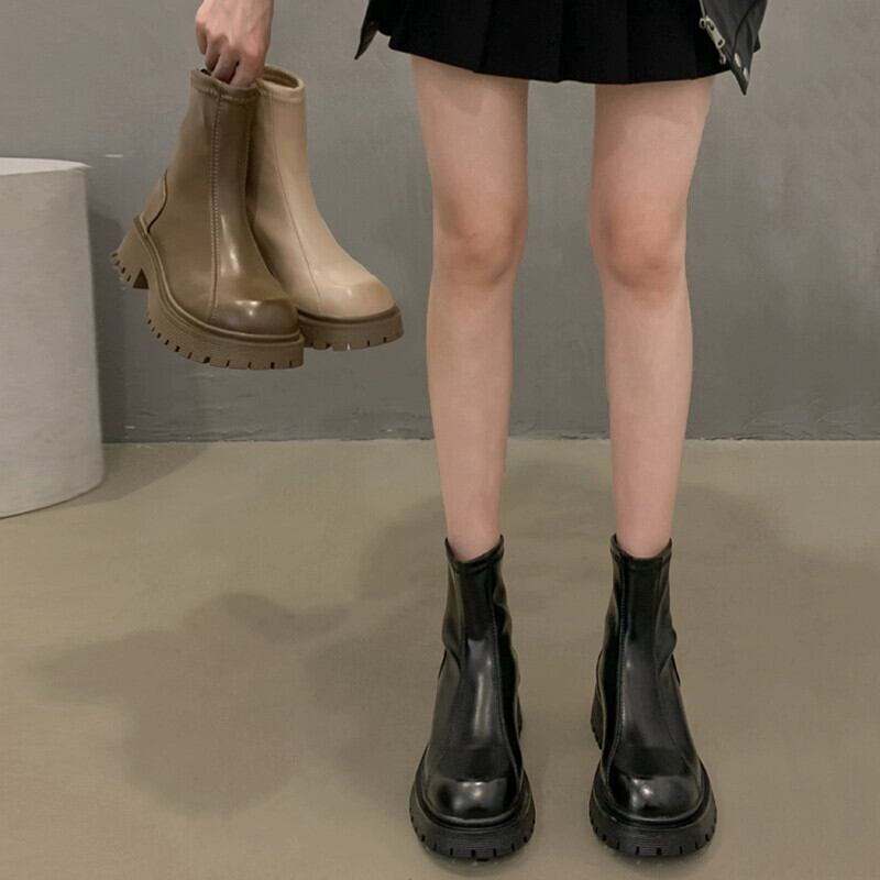 Jia Bujia フレンチショートブーツ女性 2023 秋の新ファッション多用途レトロ痩身気質太いヒールスリムブーツ 靴 シューズ オータム 秋物 jxjxf71363009721