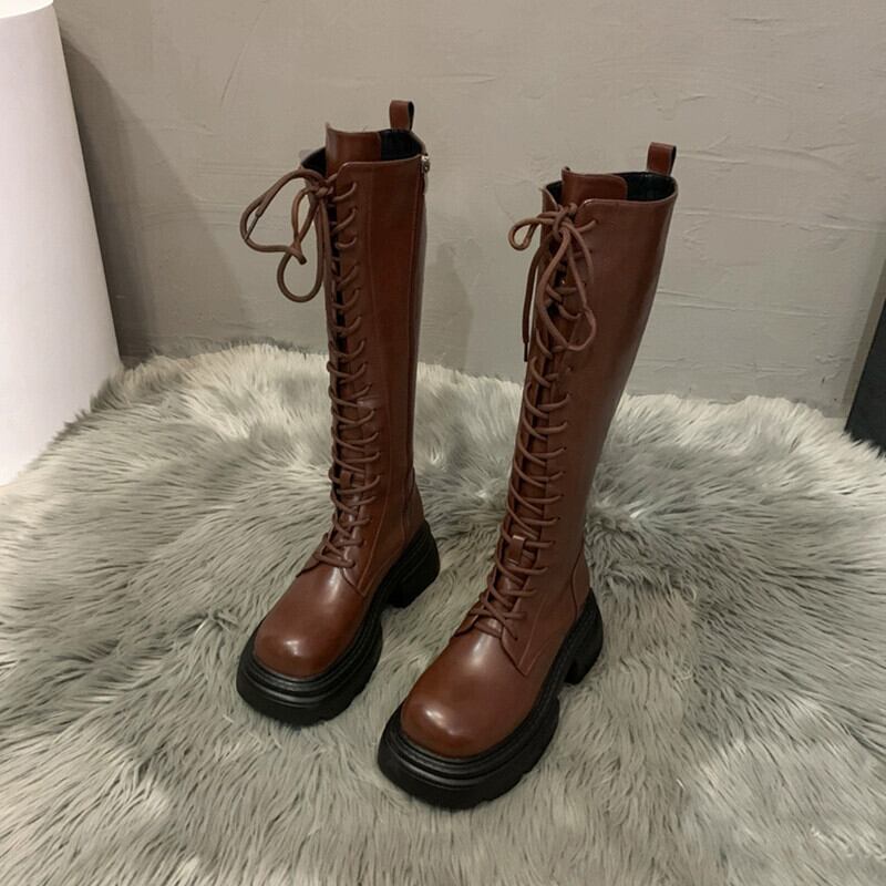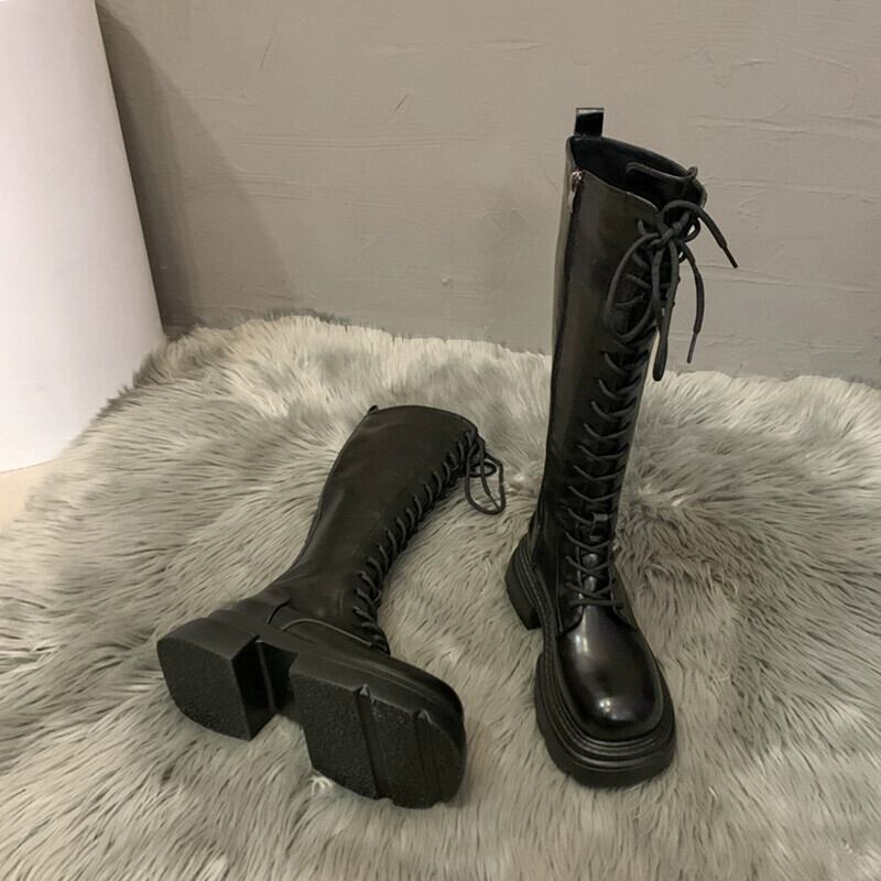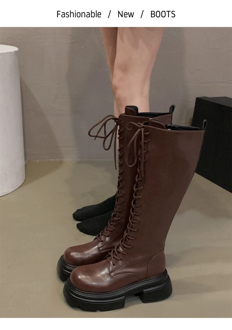 Jia Bufake ロングブーツの女性 2023 秋の新トレンディなレトロハンサムな厚底英国スタイルのナイトブーツトレンド 靴 シューズ オータム 秋物 jxjxf33615263218