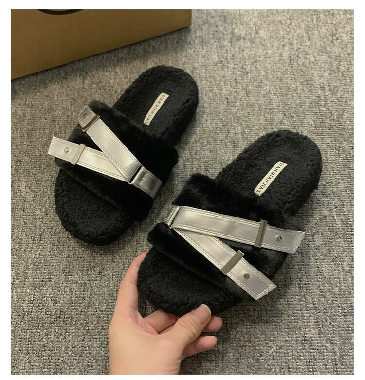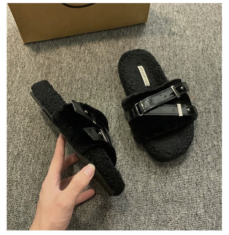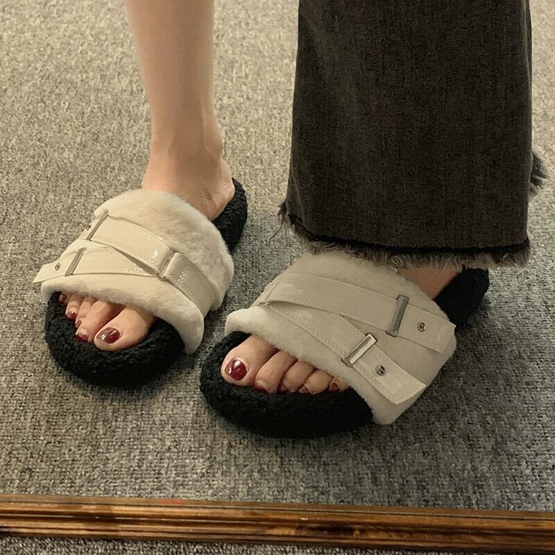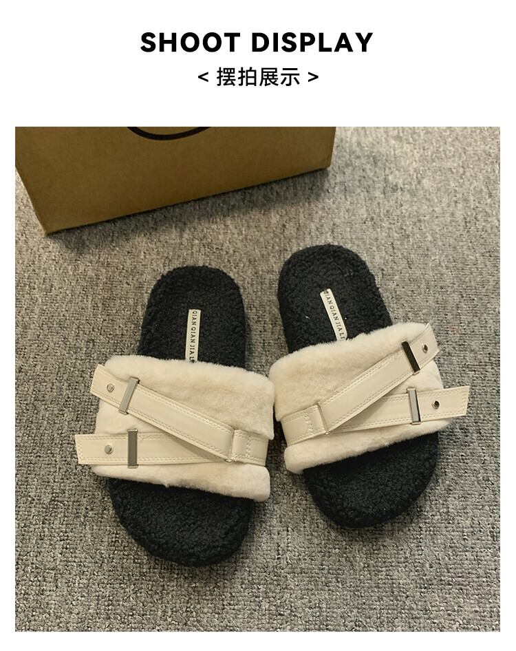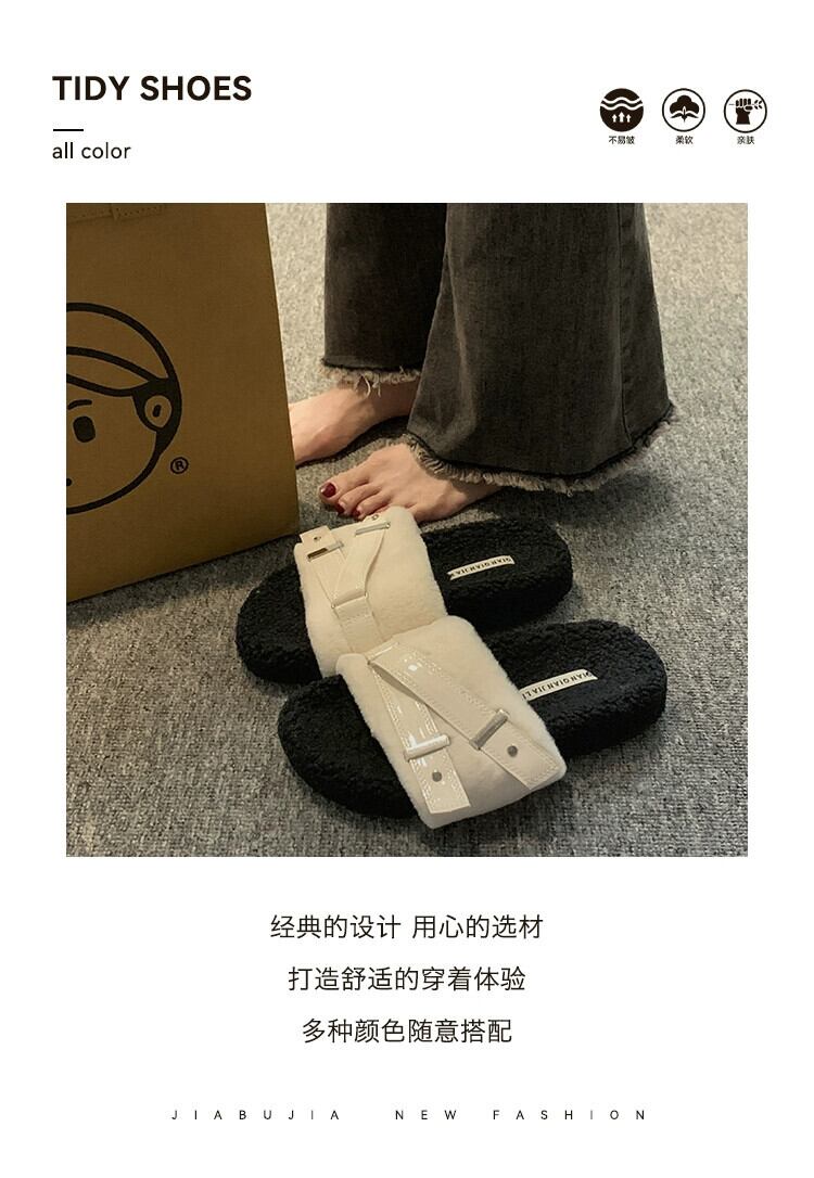 Jia Bufake スリッパ女性の秋 2023 インターネット有名人スーパーホットと西洋スタイル多用途レトロ Comtable 平底毛皮のようなトレンディなスリッパ ミュール 靴 シューズ オータム 秋物 jxjxf60141865459