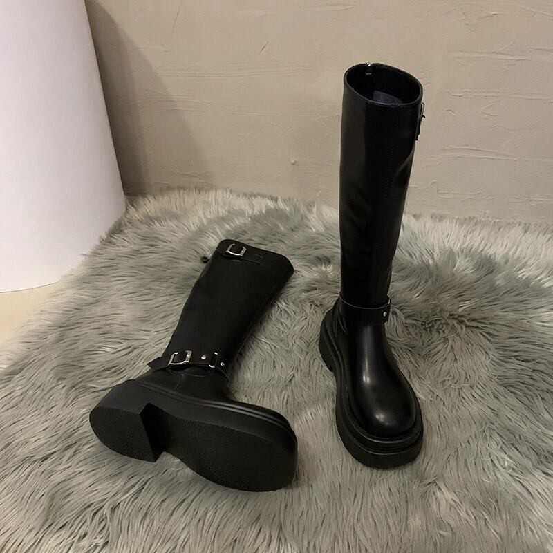 Jia Bujia インターネット有名人のブーツの女性 2023 秋の新ファッションレトロハンサムな小さな厚底スリムブーツトレンディな 靴 シューズ オータム 秋物 jxjxf10598553413