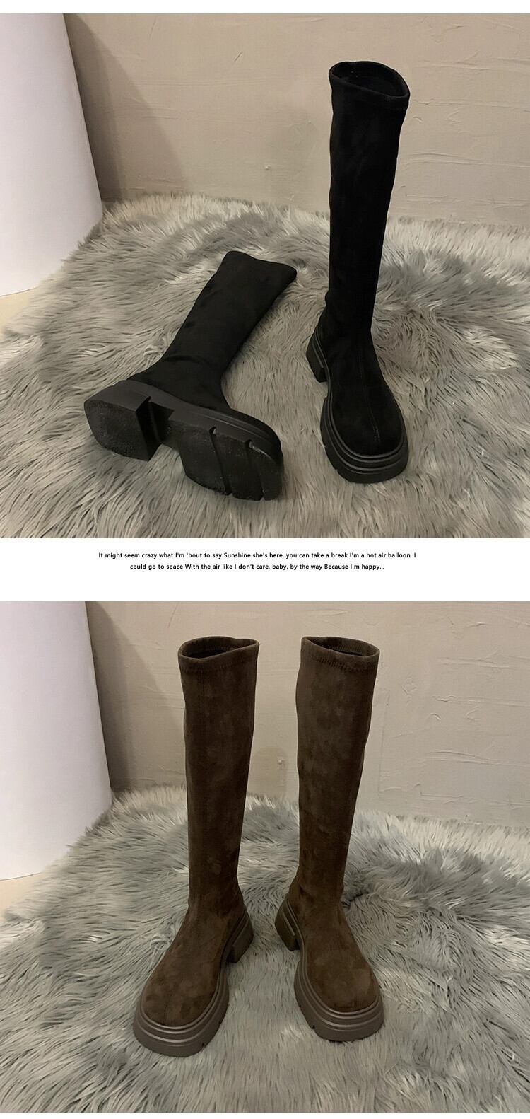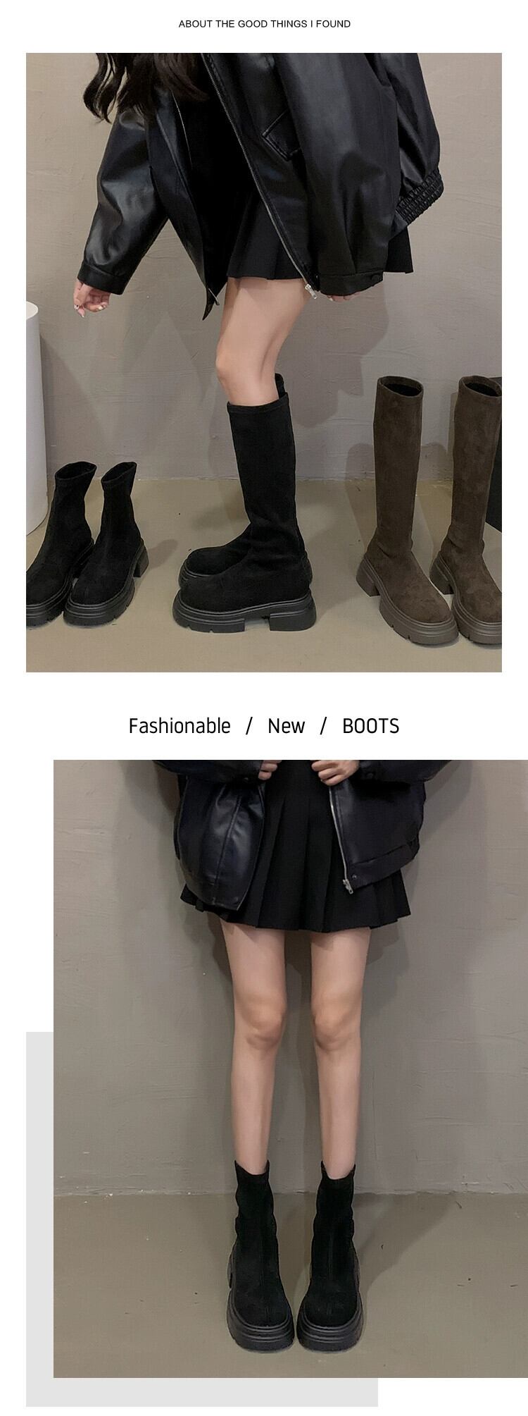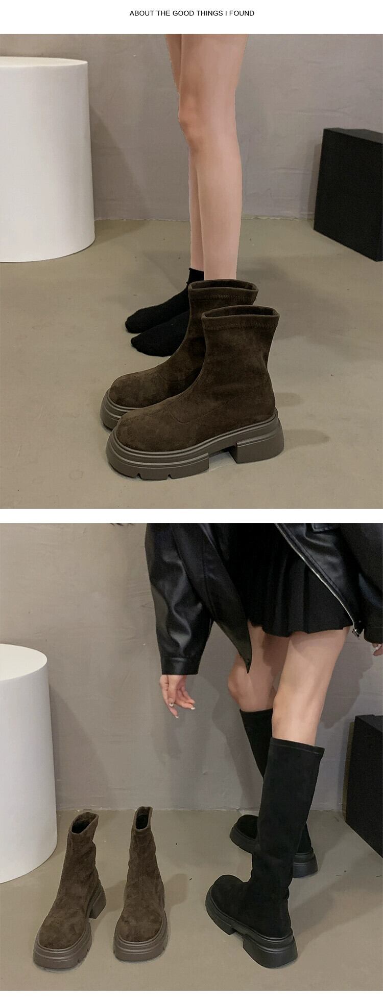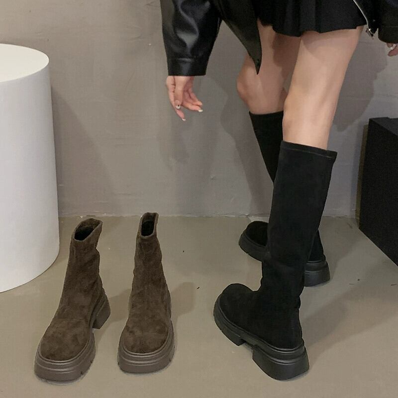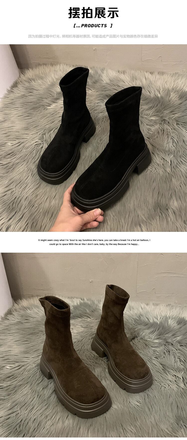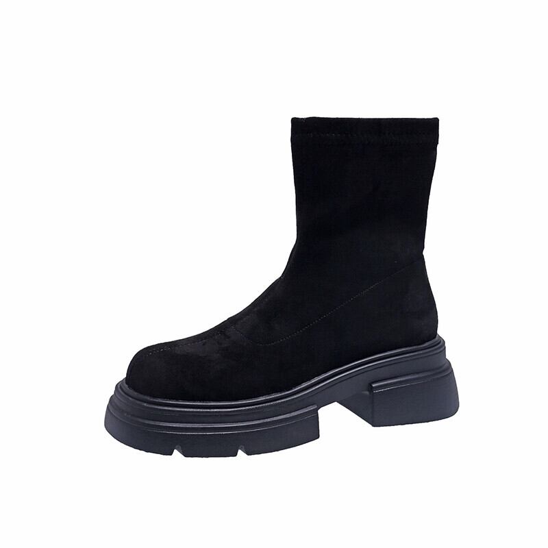 Jia Bujia 女性の弾性ブーツ 2023 秋の新レトロスタイルフレンチファッション気質太いヒールショートブーツ 靴 シューズ エラスティック 伸縮 オータム 秋物 jxjxf81706008812