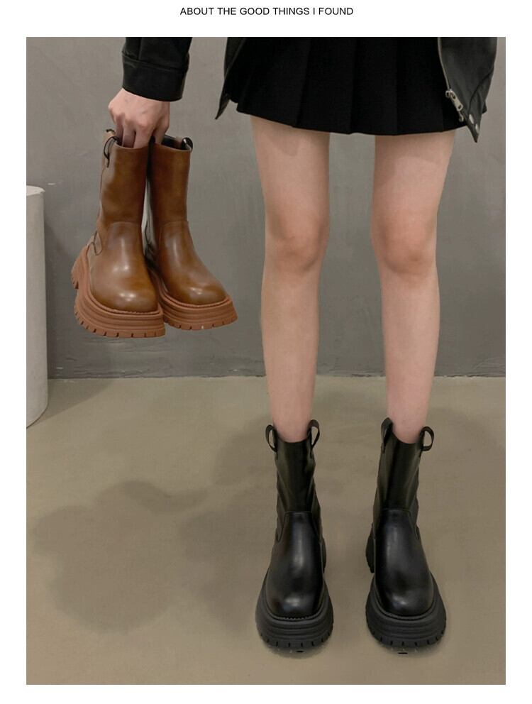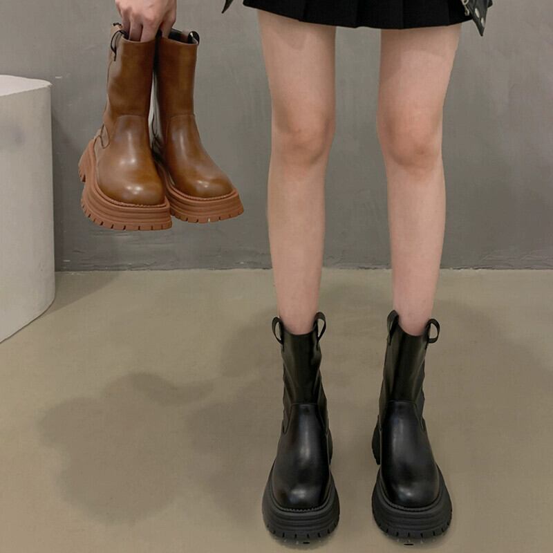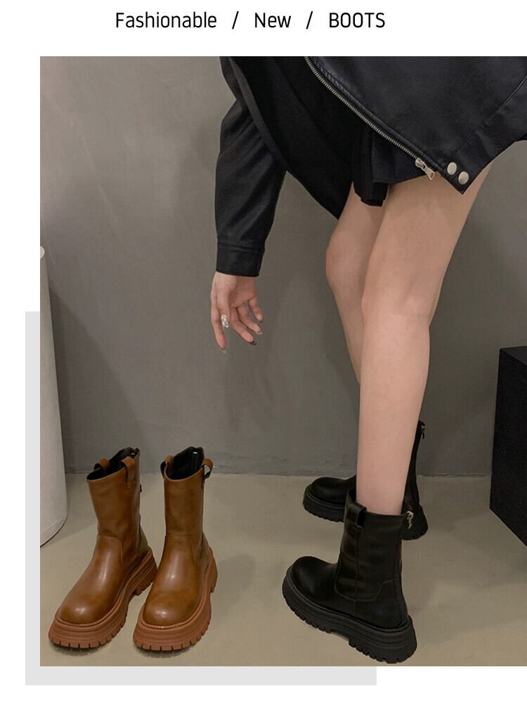Jia Bujia レディースショートブーツ 2023 秋の新ファッション気質スリム comtable 厚いヒールファッショナブルなスリムブーツトレンド 靴 シューズ オータム 秋物 jxjxf73495469438