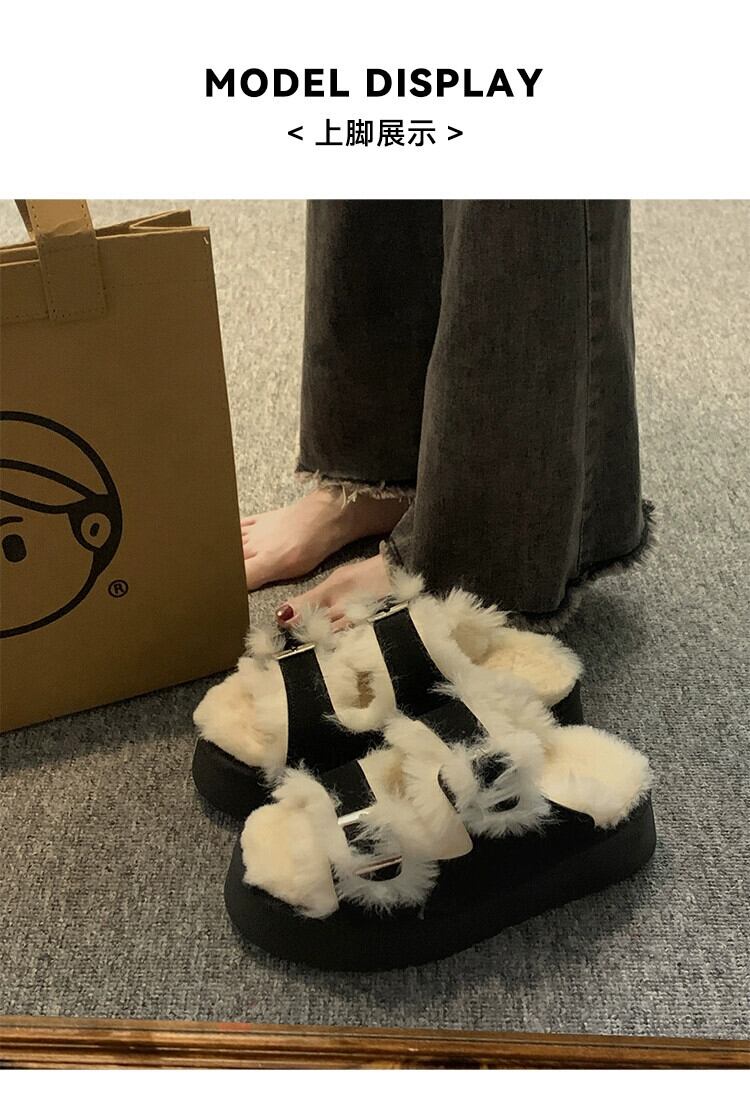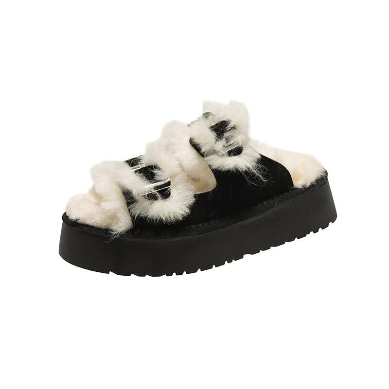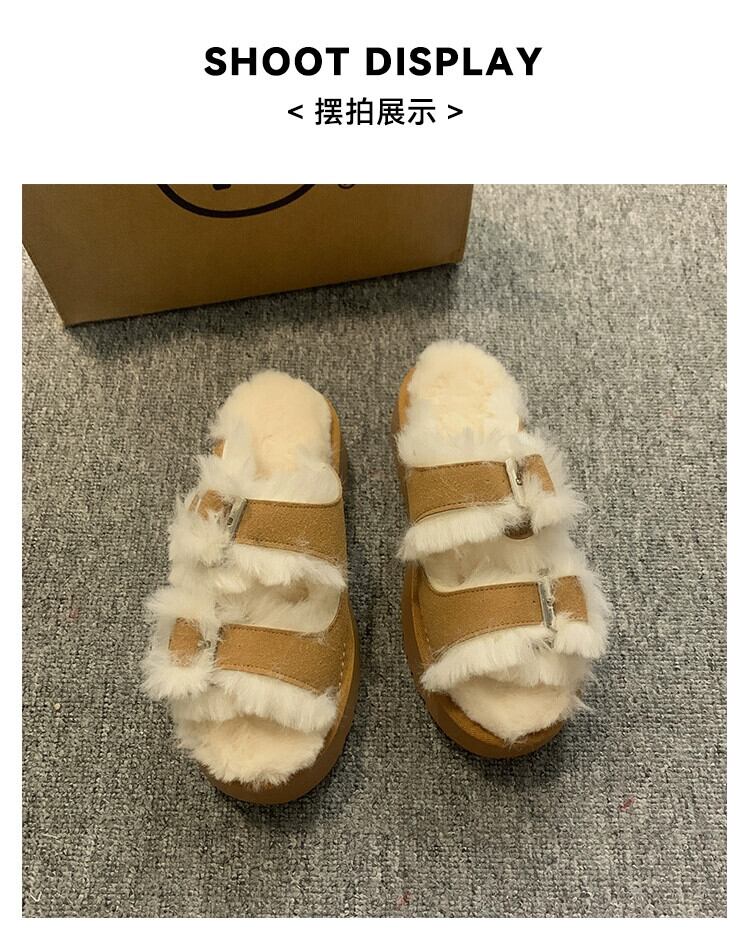 Jia Bufake スリッパ女性のアウターウェア 2023 秋の新ファッション多用途ベルトバックル厚い底 comtable ぬいぐるみトレンド ミュール 靴 シューズ オータム 秋物 ハーネス jxjxf5200382039