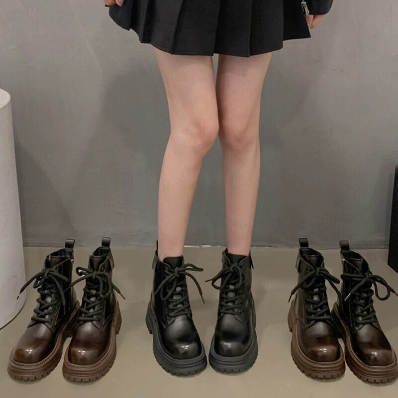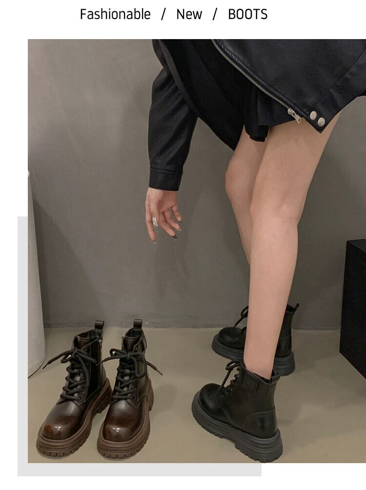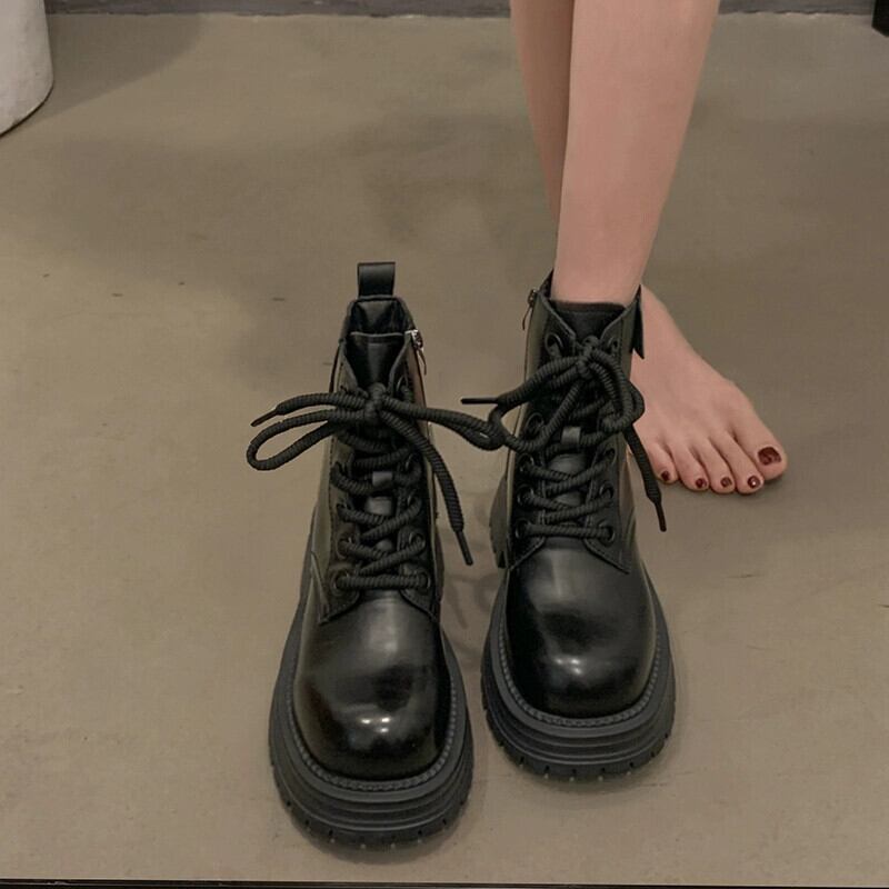Jia Bujia マーティンブーツ レディース 2023 秋冬新作 万能 おしゃれ ストリートハイ 太めヒール ブラック ショートブーツ 靴 シューズ オータム 秋物 ウィンター 冬物 jxjxf30655163067