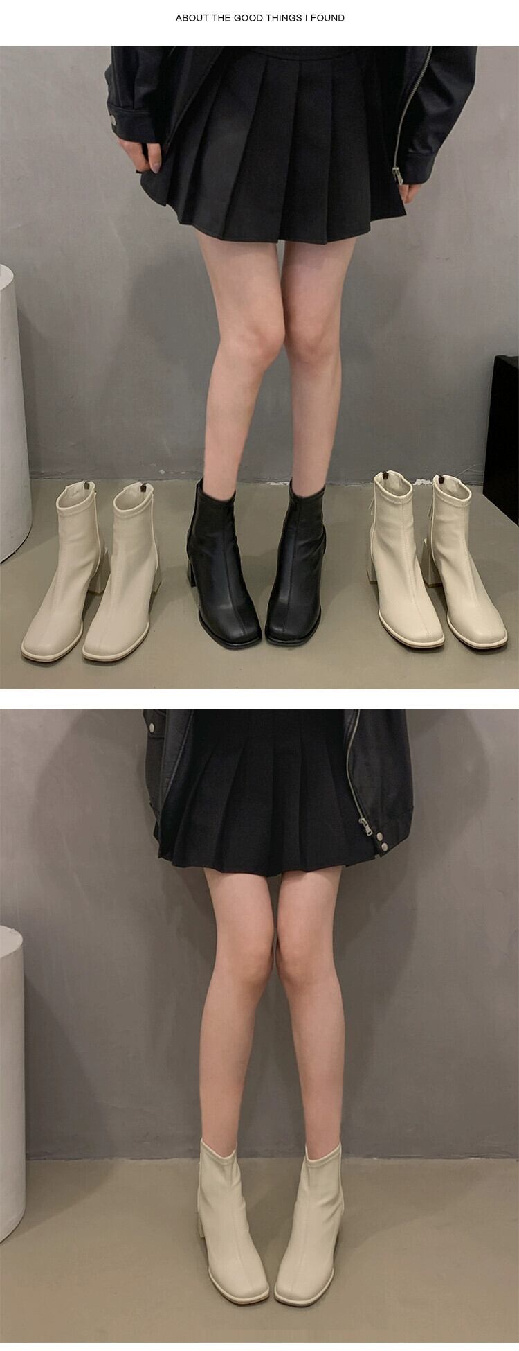 Jia Bujia 超人気ショートブーツ女性 2023 秋冬の新しいファッション気質多用途スクエアトゥハイヒールスリムブーツトレンド 靴 シューズ オータム 秋物 ウィンター 冬物 スクウェア jxjxf57691607790