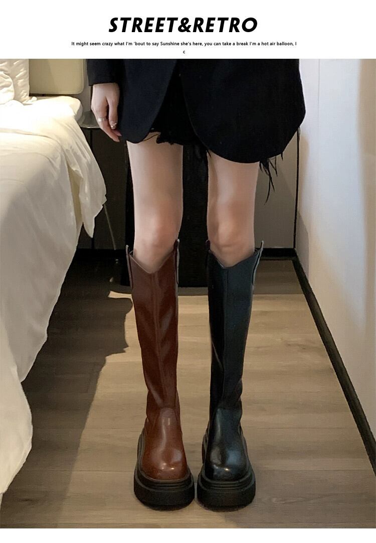 Jia Bujia インターネットセレブブーツレディースブーツ 2023 秋の新ファッションレトロトレンド厚底スリムブーツトレンド 靴 シューズ オータム 秋物 jxjxf77150412724