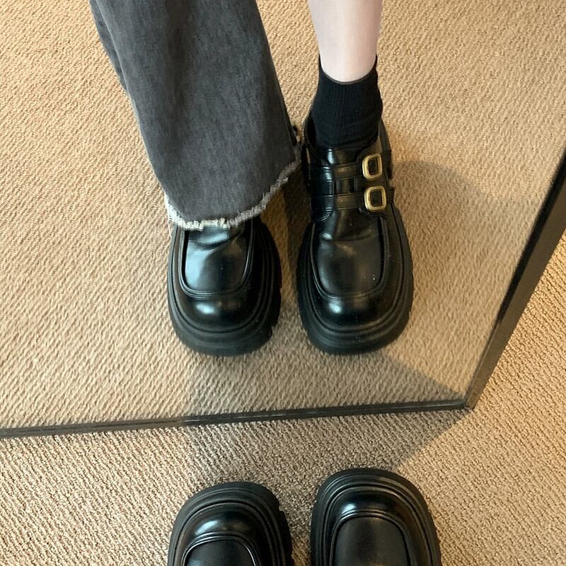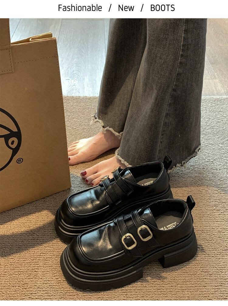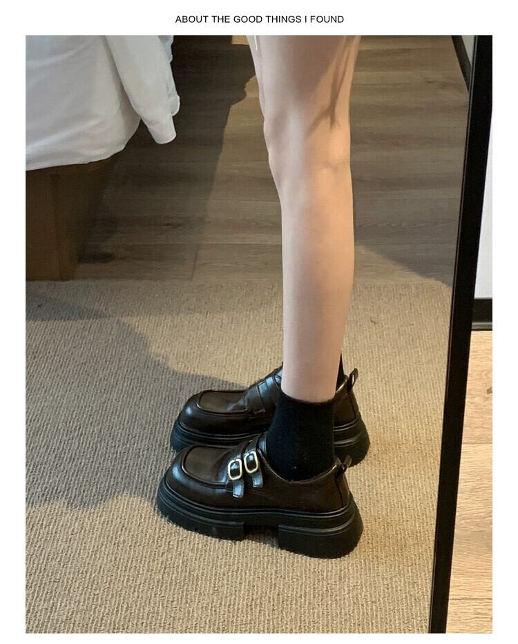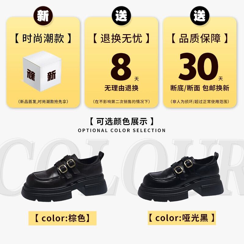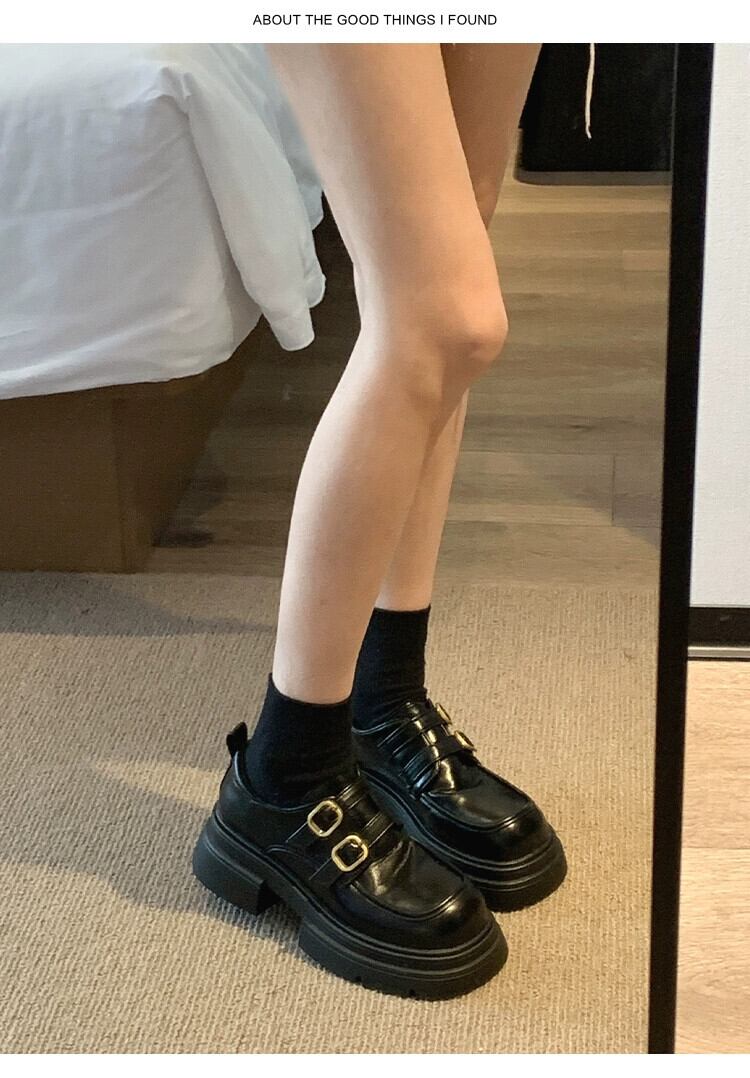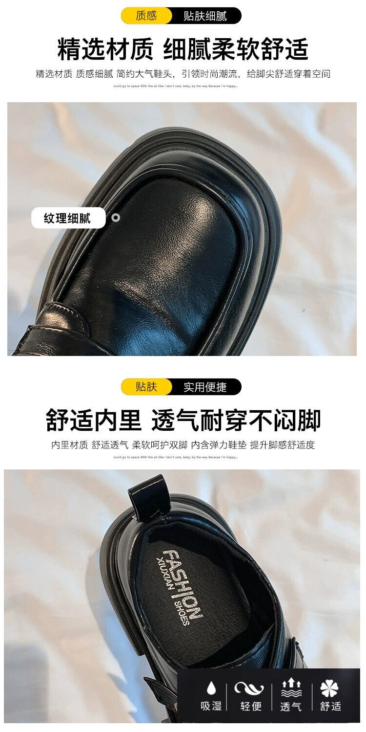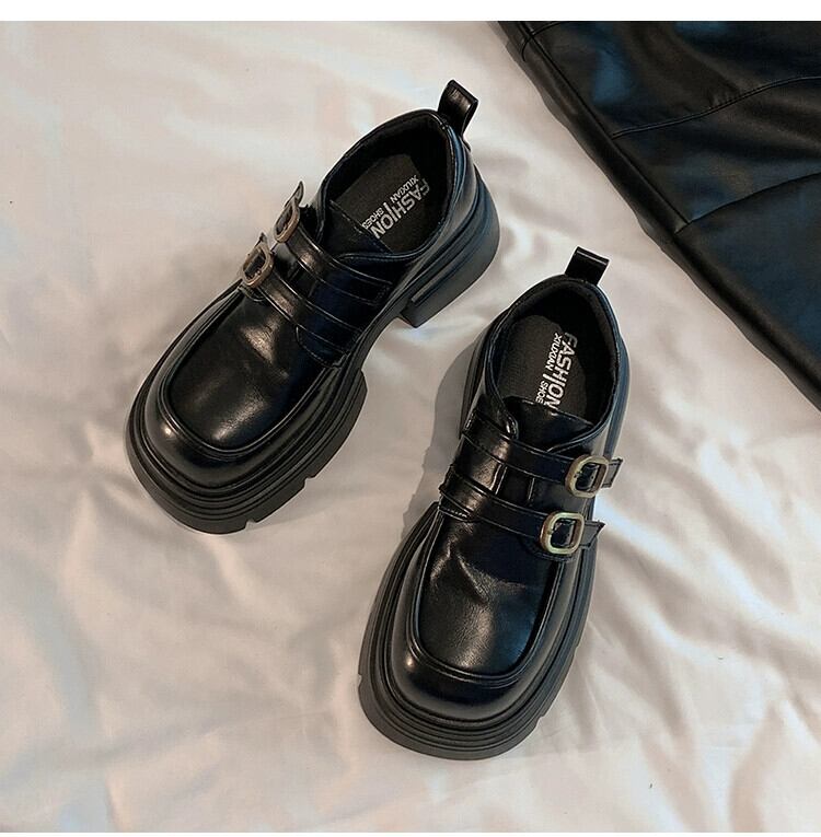 Jia Bujia スタイル小さな革の靴の女性 2023 秋の新ファッションフランス英国ベルトバックル厚いヒールローファー シューズ オータム 秋物 レザー ハーネス jxjxf70356085450