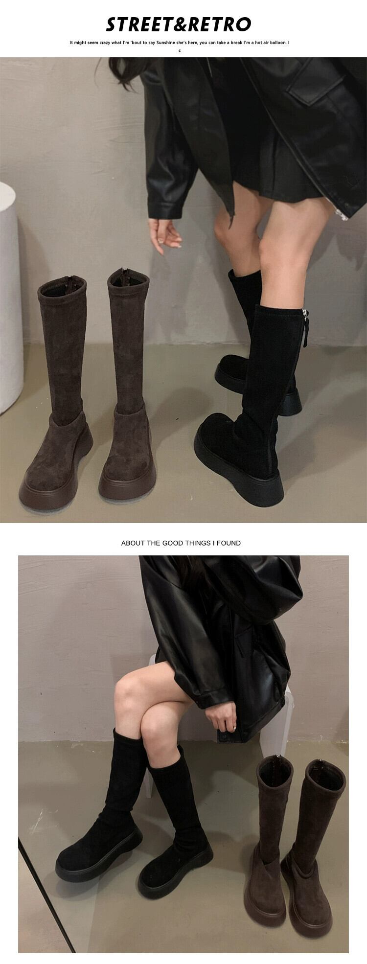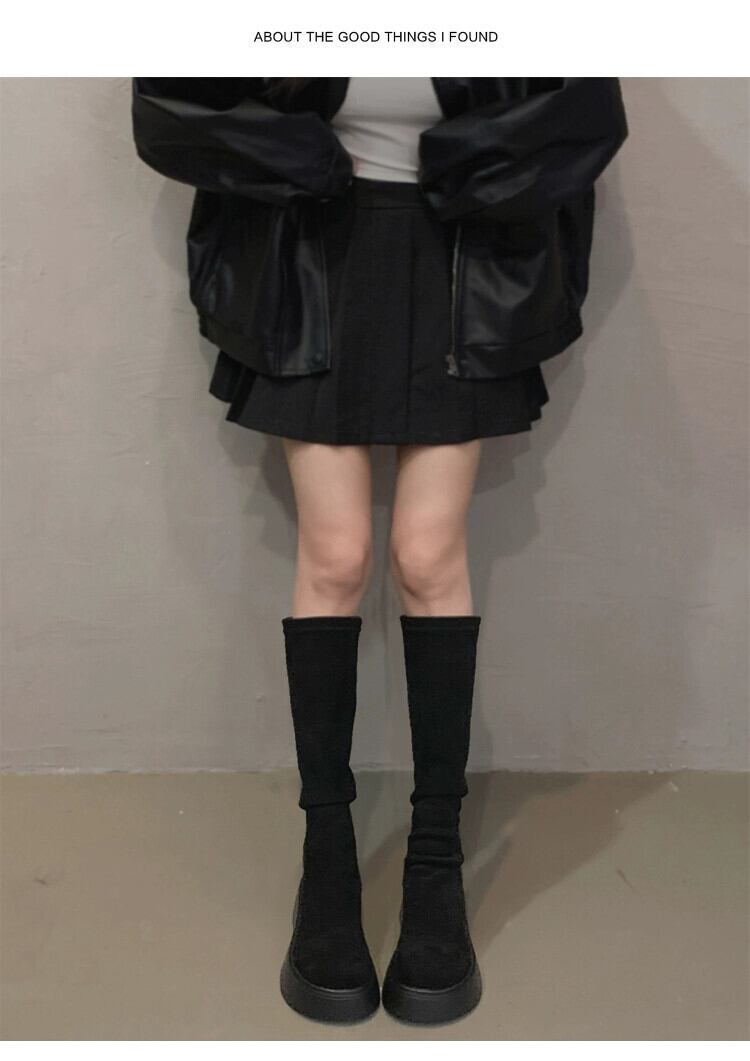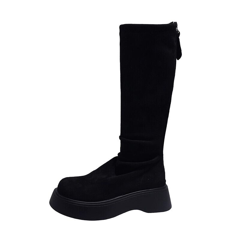 Jia Bufake ロングブーツの女性 2023 秋の新ファッションレトロオールマッチ小型厚底非落下スリムブーツ 靴 シューズ オータム 秋物 jxjxf7179163653