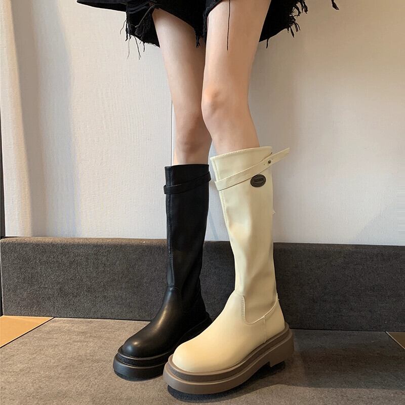 Jia Bujia インターネット有名人のブーツの女性 2023 秋の新ファッション多用途フレンチレトロ厚底 eign スタイルスリムブーツ 靴 シューズ オータム 秋物 jxjxf14394249770
