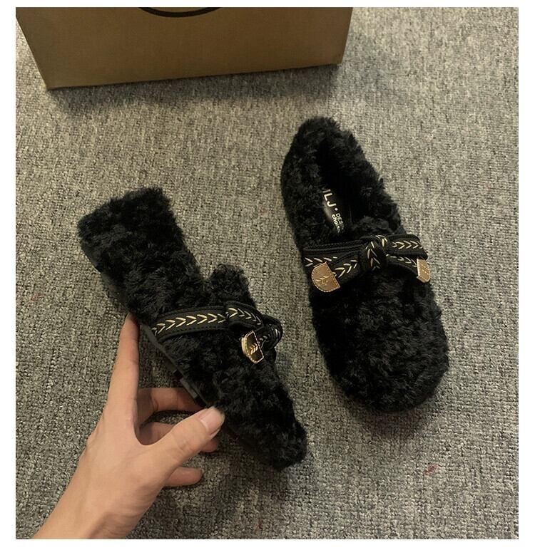 Jia Bu フェイクファーリーシューズの女性、2023 秋の新しいスタイル、フランスのファッション、エレガントなスタイル、快適、暖かい、柔らかい底の綿の靴のトレンド コットン オータム 秋物 jxjxf19002310376