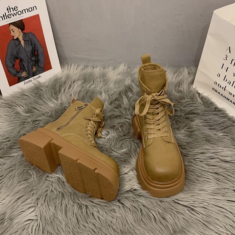Jia Bujia ブーツ レディース ショートブーツ 2023 秋インターネット有名人多用途レトロハンサム厚底オートバイマーティンブーツ 靴 シューズ オータム 秋物 jxjxf9481037982