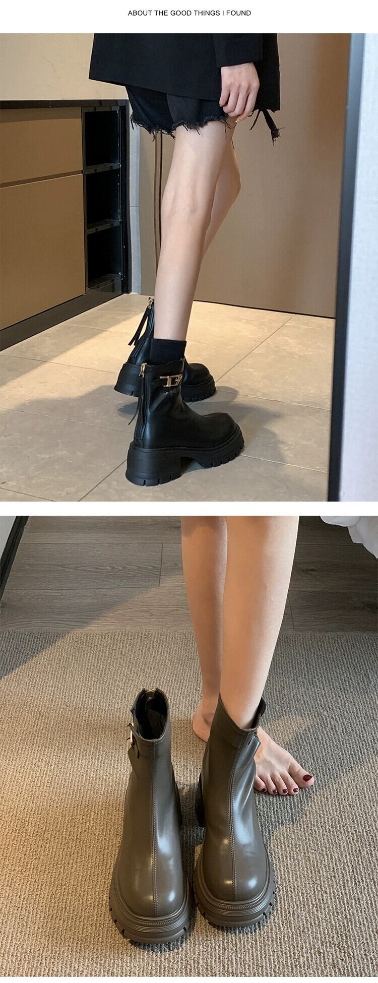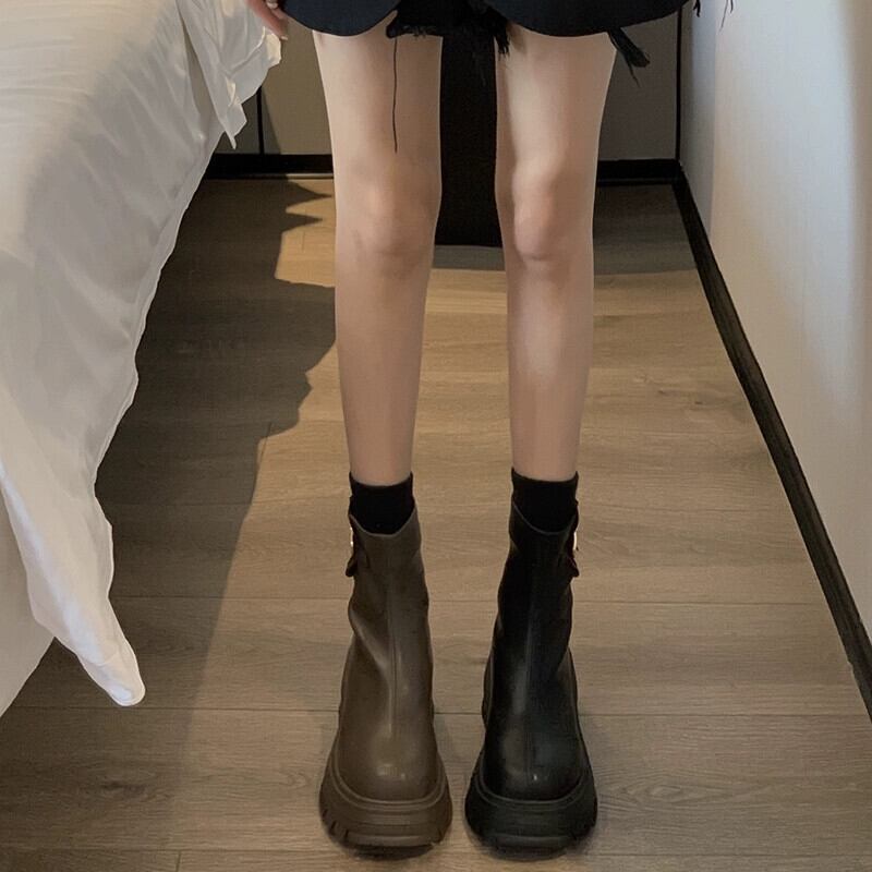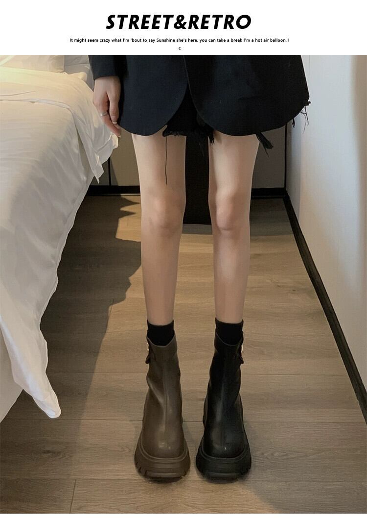 Jia Bujia インターネット有名人ショートブーツの女性 2023 秋の新ファッション多用途気質レトロ厚底フレンチスリムブーツ 靴 シューズ オータム 秋物 jxjxf44954955833
