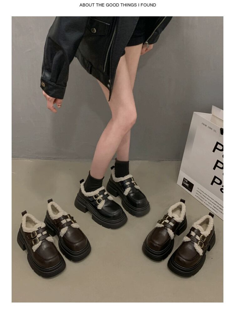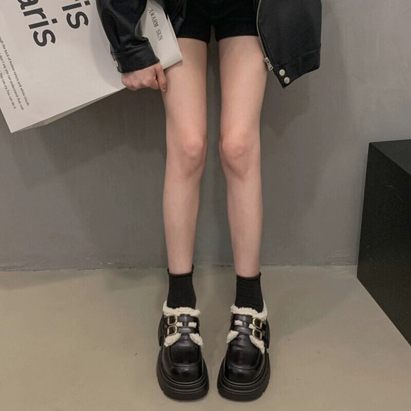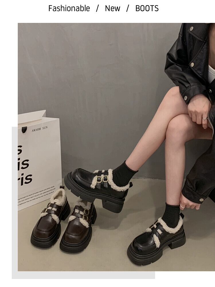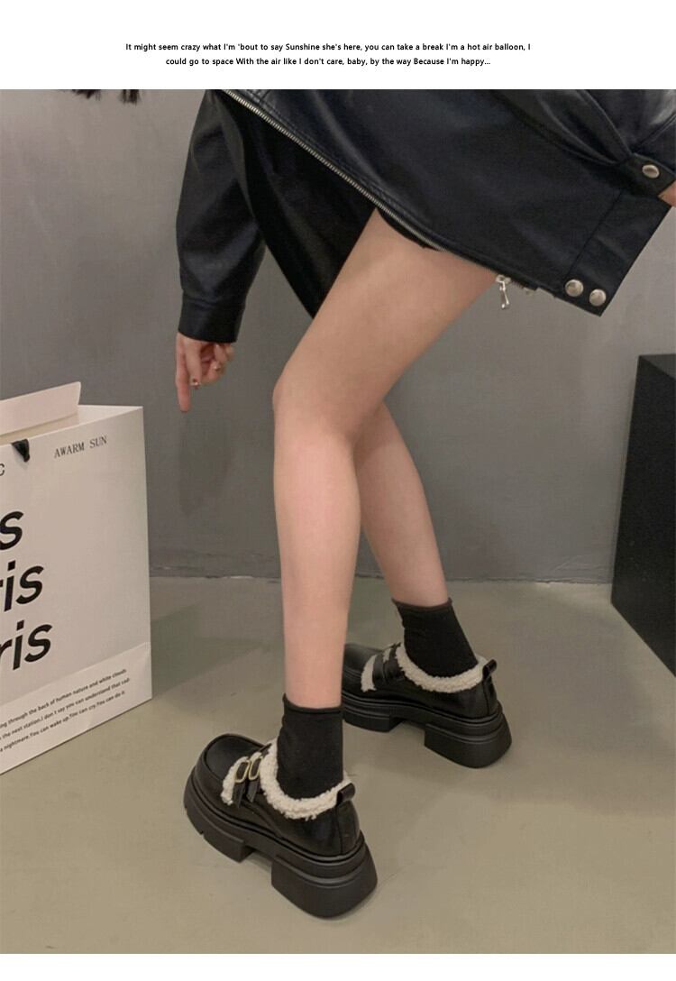 Jia Bujie シングルシューズの女性 2023 新しい秋のスタイルファッショナブルで多用途な小さな厚いヒールとベルベットの小さな革靴トレンディな オータム 秋物 レザー jxjxf15132574325