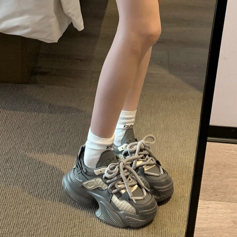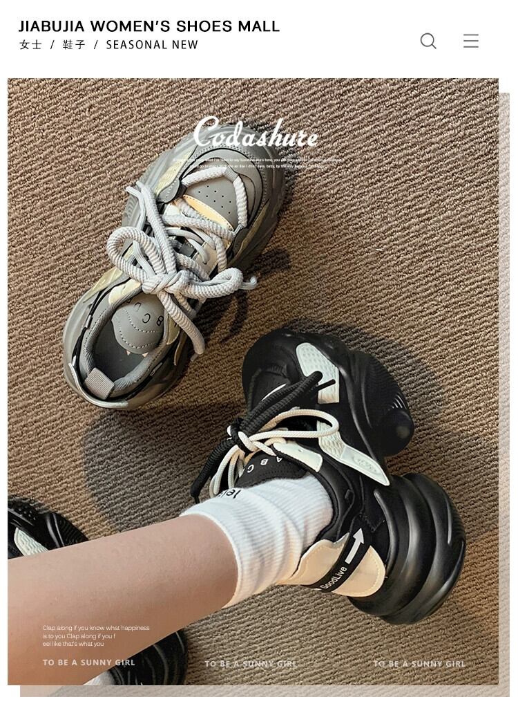 Jia Bujia カジュアルシューズの女性、2023 秋の新スタイルフレンチスタイルの学生を高める厚底ランニングお父さん靴 オータム 秋物 jxjxf21718596463