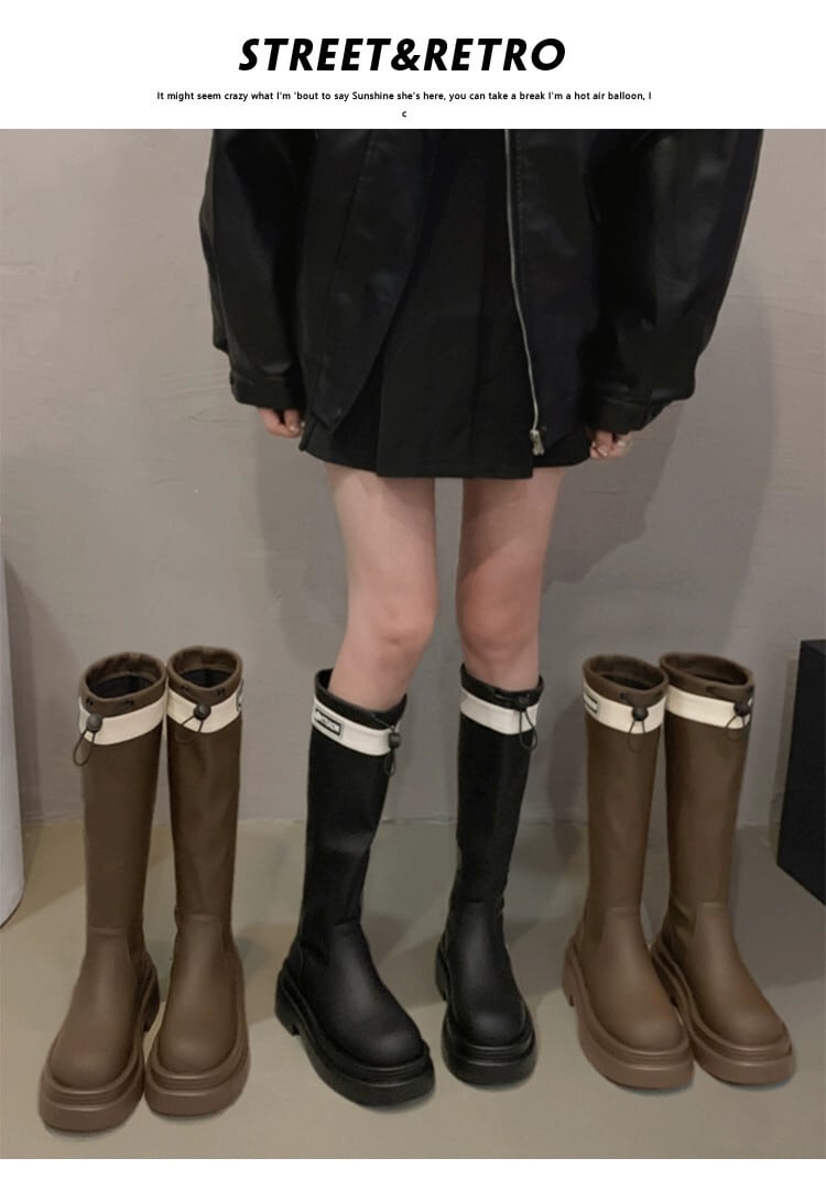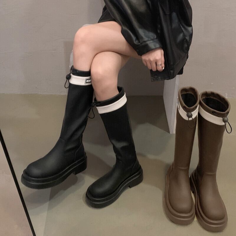 Jia Bufake ブーツの女性 2023 秋の新ファッション多用途レトロハンサム厚底フレンチスリムブーツトレンド 靴 シューズ オータム 秋物 jxjxf27449019597